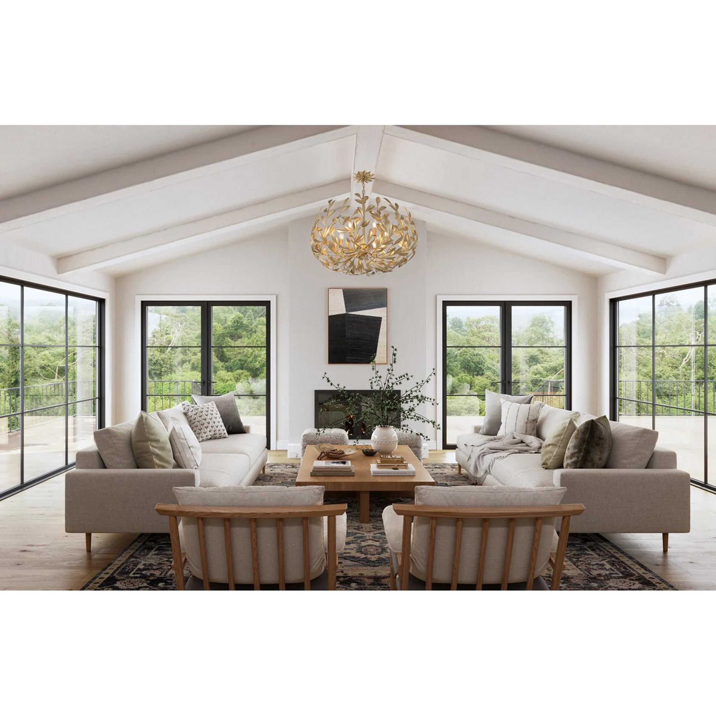A poetic fusion of nature and opulence, the Olive Leaf chandelier evokes a lush forest at dusk. Sculpted in four different radiant finishes, its wreath-like frame unfurls with elongated leaves that shimmer with botanical grace. Nestled at the heart of this luminous canopy, discreet bulbs cast a warm, ambient glow—illuminating interiors with elegance and quiet drama. Suspended by a matching chain, the Olive Leaf chandelier is a statement piece for entryways, dining rooms, or any space seeking refined organic allure.