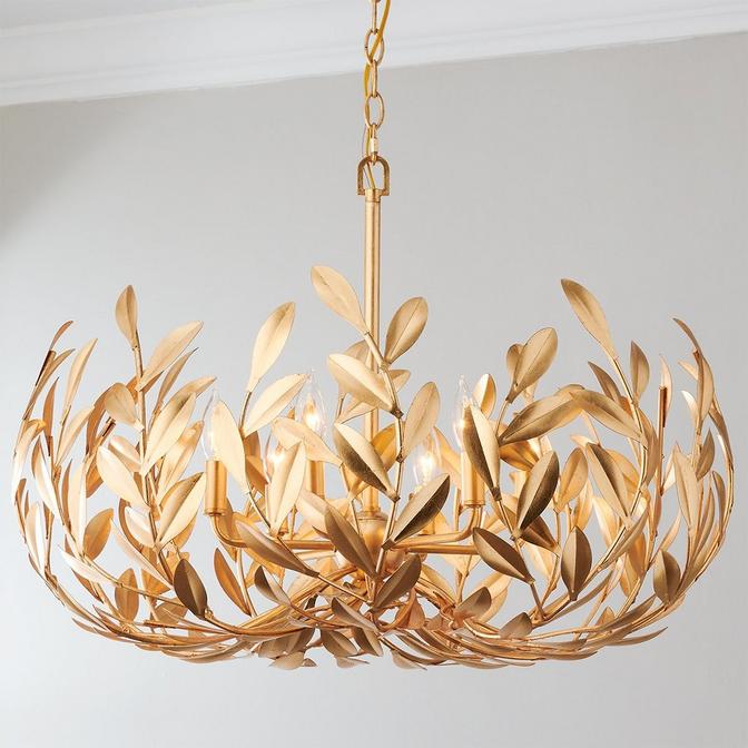 A poetic fusion of nature and opulence, the Olive Leaf chandelier evokes a lush forest at dusk. Sculpted in four different radiant finishes, its wreath-like frame unfurls with elongated leaves that shimmer with botanical grace. Nestled at the heart of this luminous canopy, discreet bulbs cast a warm, ambient glow—illuminating interiors with elegance and quiet drama. Suspended by a matching chain, the Olive Leaf chandelier is a statement piece for entryways, dining rooms, or any space seeking refined organic allure.