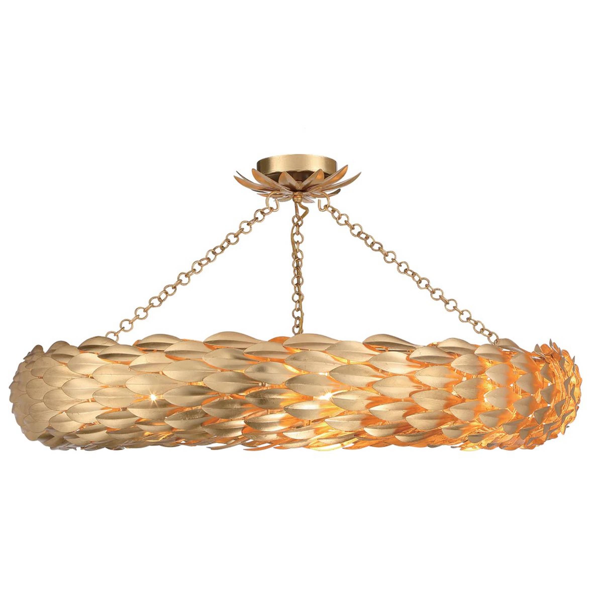 Sculptural metal olive leaves create a halo that radiates from within. Convertible for versatile installation in a bedroom, living area, or any room that needs a bit of drama!