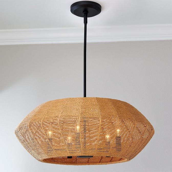 Bring nature with a contemporary twist into your space with the exquisite Organic Modern Rattan Chandelier. This striking piece features a pronounced rattan shade encircling a cluster of lights to provide optimal illumination for your space. Suitable for areas such as kitchens and living rooms, this fixture will add effortless elegance to your home.
