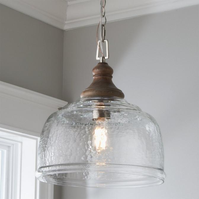 Eclectic and contemporary, this organic pendant light can accommodate any space. The rippled glass shade elevates the overall fixture and casts beautiful patterns of light on the ceiling when illuminated at night. The organic, gray washed wood cap provides a natural element to this unique pendant.