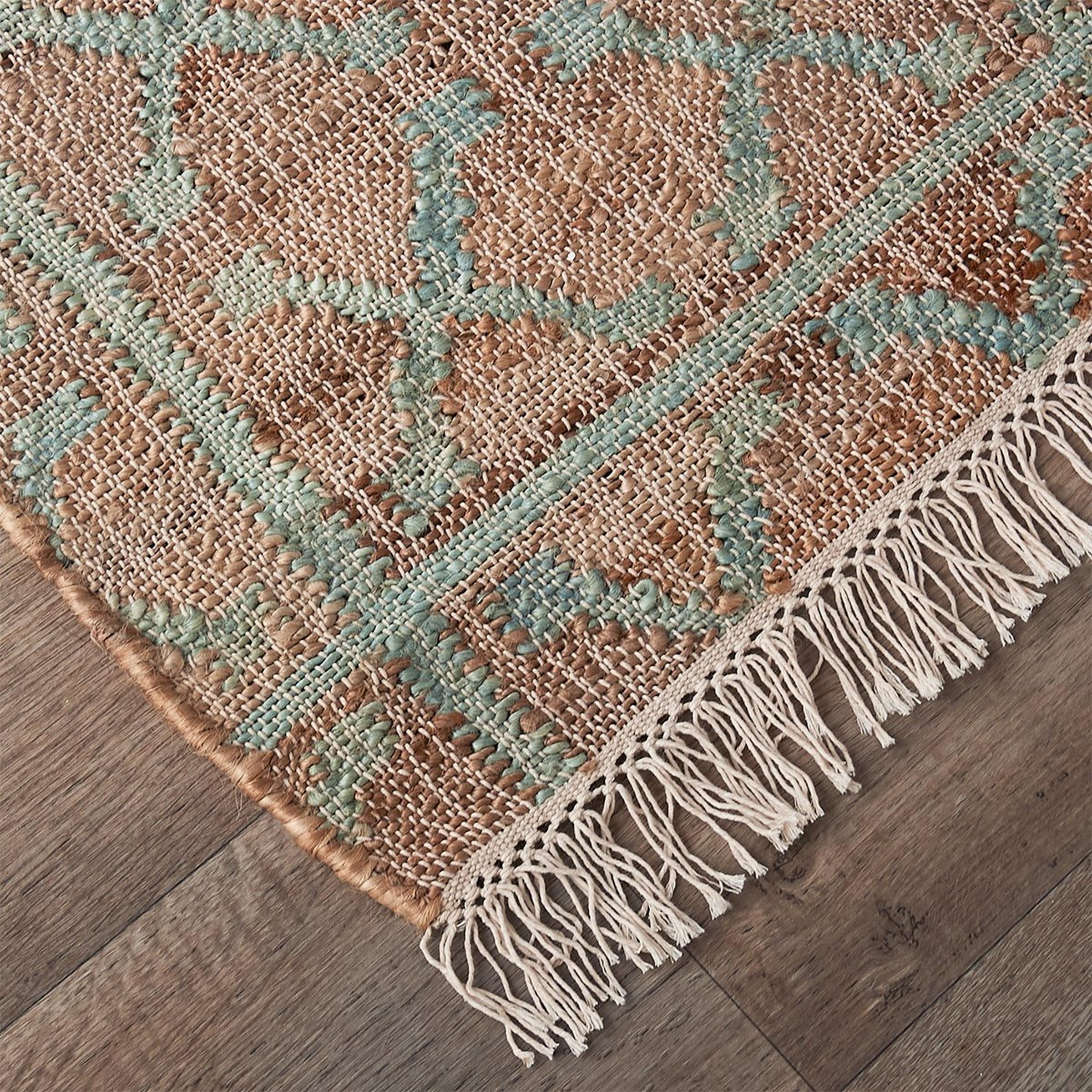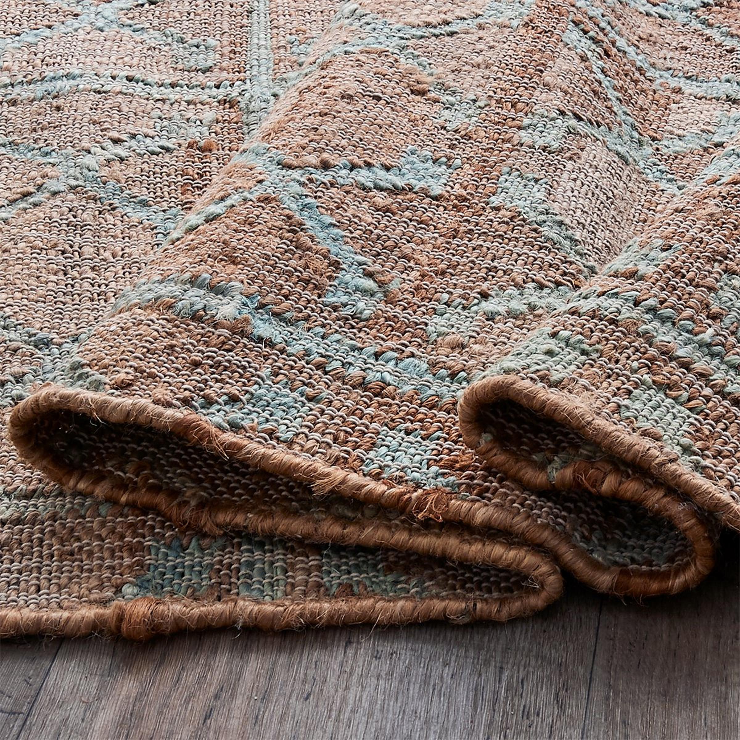 Neutral, but with a touch of flair. The subtle pattern on this rug gives just the right amount of interest, without overpowering the space where it is being used. Handwoven with natural Jute fibers this textural rug is incredibly versatile, from being perfectly at home in a casual, coastal space, or being used as a light and airy grounding element in a formal dining room surrounded by antiques. Due to the nature of the natural jute construction only spot cleaning with water is recommended for stains.