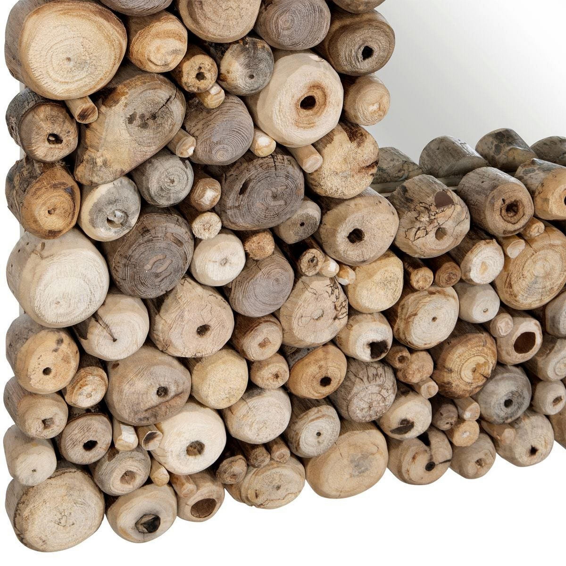 Slivers of reclaimed wood are crafted into this mirror's wide frame, creating a bold design with stunning craftsmanship. Due to the nature of these salvaged materials, each mirror will be a one-of-kind piece that celebrates the beauty of these unique fruit woods. Pair alongside other wood tones or use to add a splash of textural flair to any space!