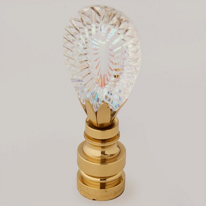 Color is cut into an almond-shaped crystal for our Peacock Crystal Finial. This unique and decadent piece will add a whimsical bit of glamour to complete your lamp.