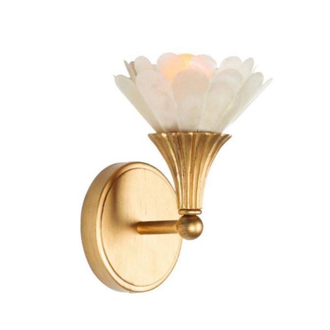 The Persimmon Pocket Sconce is a dainty choice for an elegant living room or hallway. Natural capiz shell provides ample illumination as light passes through its natural opaque coloring. The individually carved petals complement its detailed frame, enhancing the petite sconce's stature. The design of the fixture is full of inspiration as the shade resembles a flower petal, garden foliage, and stained glass masterpieces. Due to the natural material used, variances in tone and color may occur; no two pieces will be identical.