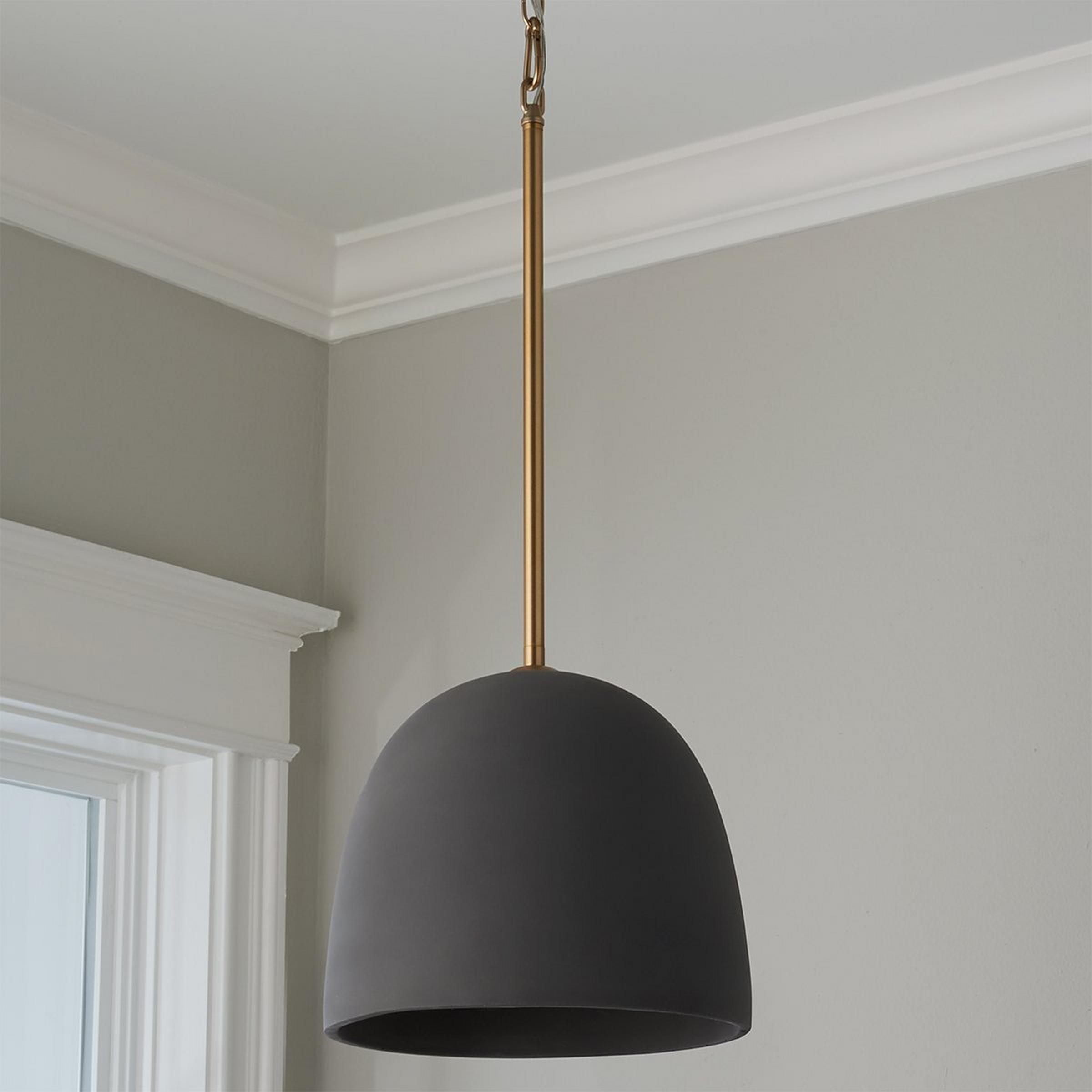 This modern sculptural pendant boasts a contemporary concrete dome shade with sleek hardware to give you an updated vibe all while adding texture to your space. This pendant can be styled over an island or over a kitchen table for a chic touch.