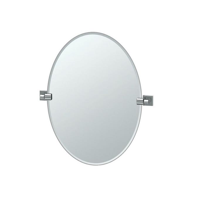 This practical beveled mirror pivots to achieve the perfect viewing angle while the simple frameless design and mounting brackets lend it a clean, modern feel. Available in Chrome and Satin Nickel finishes. (26.5"Hx24"Wx2"E). 10 lbs. Mountable only as pictured. Mirror width is 20.50" W.
