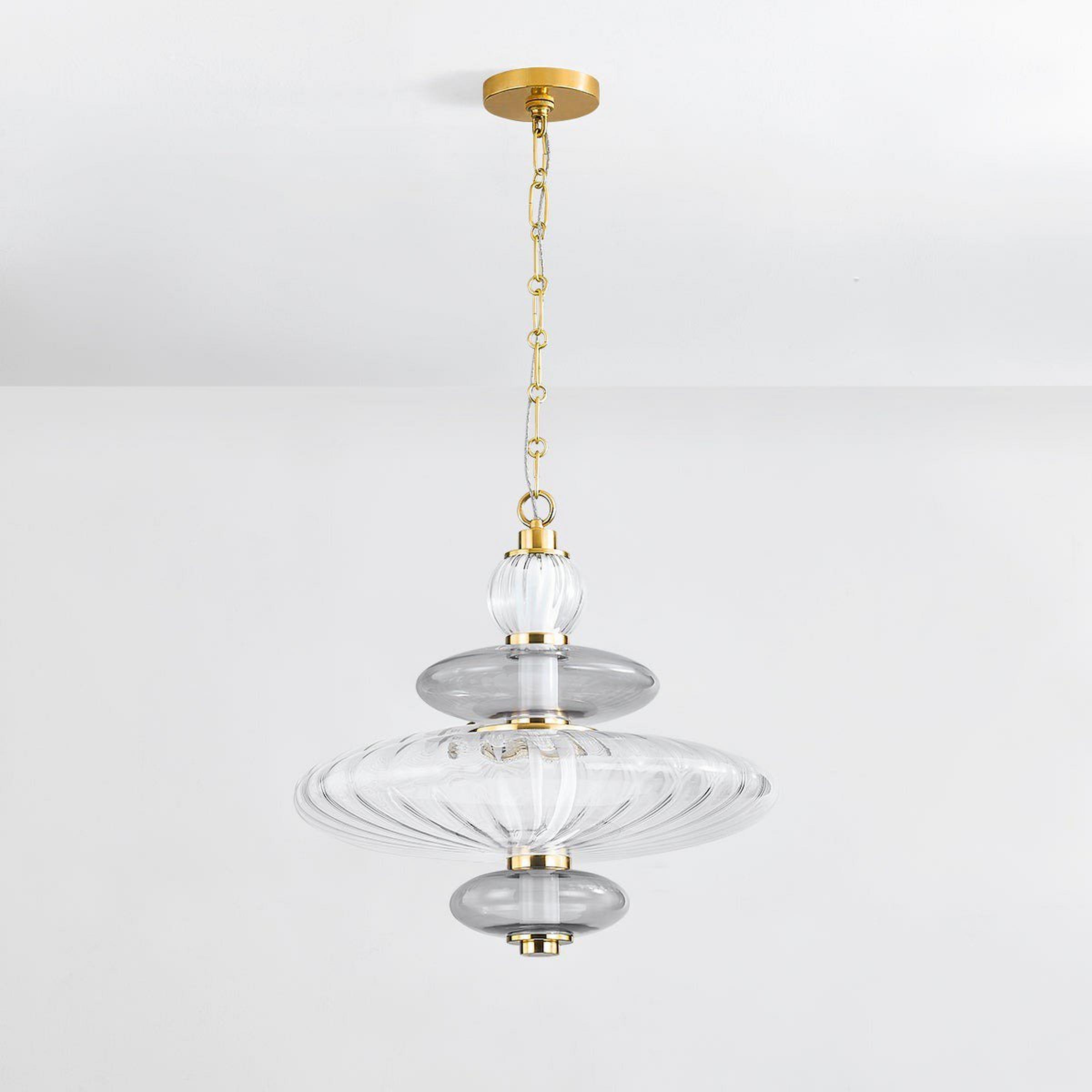 Stylish and sophisticated, the Pleiades Pendant consists of glass ovals stacked in an alternating pattern of contrasting textures. The smoked glass diffuses the light while the clear glass transforms it with a refracting lens effect. At the core, the integrated LED core glows evenly to finalize a glamorous fixture.