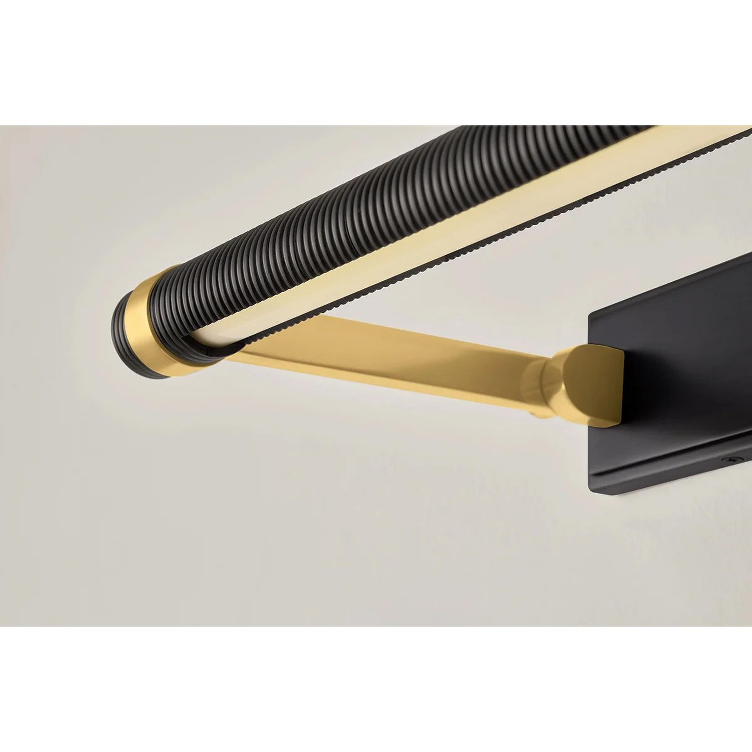 Modern and industrial aesthetics merge in the arresting Polymetis Picture Light. This wonderfully unusual picture light encloses energy-efficient integrated LED lighting in a slender ridged shade. Bracket-like arms and a rectangular backplate support the light bar, offering an angular contrast to the slim cylindrical shade. Deceptively minimalist, this fixture adds architectural interest to any room, highlighting your favorite wall art with swagger and style. Endlessly versatile, Polymetis can also be mounted in bathrooms and powder rooms for a streamlined vibe with tons of flair. Please note this fixture requires a gem box.