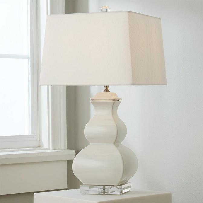 Chic table lamp with a modern gently curved square shape. Available in several beautiful colors to complement your decor.