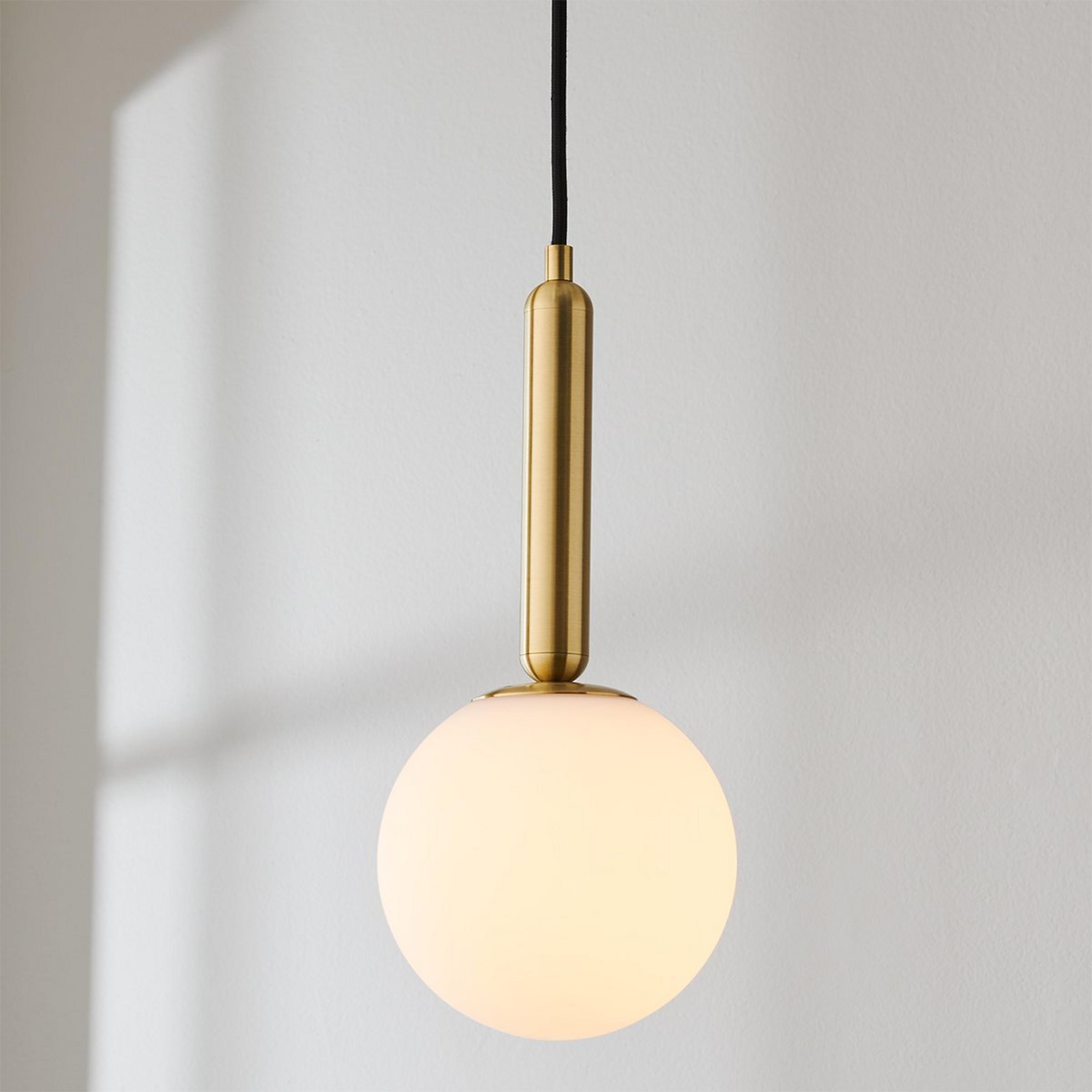 Create the art of stylish living with this vertical drop pendant. The cylindrical frame and glass globe configuration lend a mix of modern and contemporary stylings that will enhance its surrounding decor.