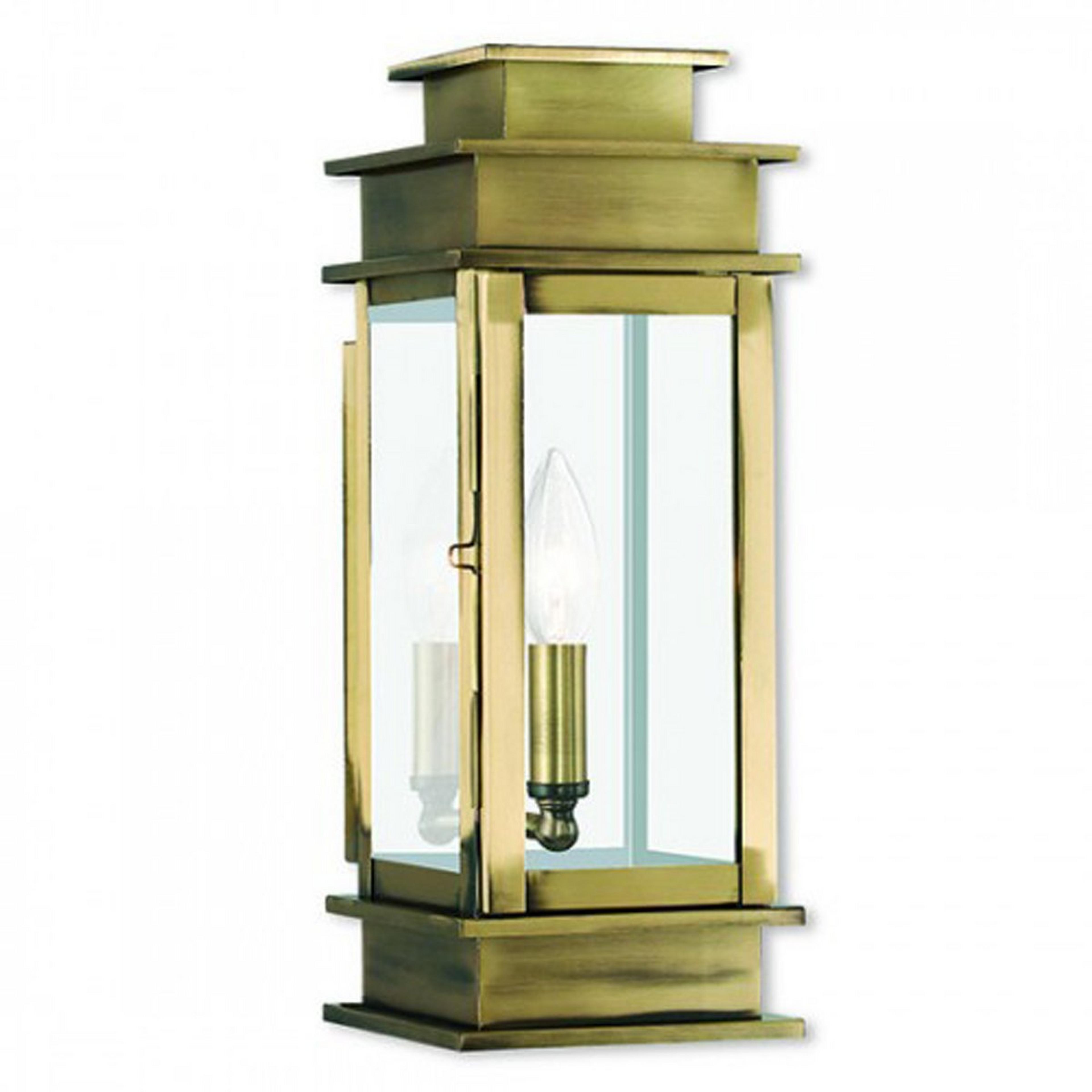 The squared-off steps in the design of this outdoor wall light give it a modern reception. Handcrafted from solid brass. this collection will be at home inside or out! A shiny stainless steel back wall reflects the light for double effect!