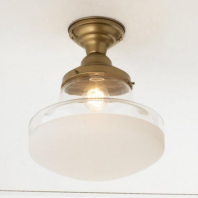 Our Retro Frosted Glass Ceiling Light features a half frosted schoolhouse style glass shade that gives a retro touch to industrial or farmhouse style homes.
