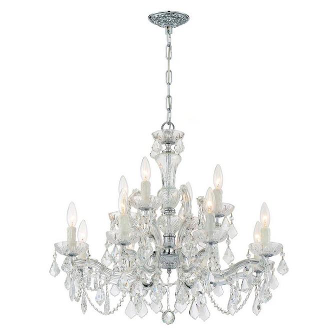 This grand chandelier features decadent crystals that cascade around a central frame. Each piece of glass is a multifaceted, jewel-like teardrop or bead that reflects and refracts light as it hangs brilliantly over a front entryway, living space, grand dining room, home office or bedroom. In each different room, a different feeling is conveyed. In a front entry or dining space, it portrays a formal space for welcoming guests, while a bedroom chandelier serves to enhance restful activities and add beauty to personal spaces.