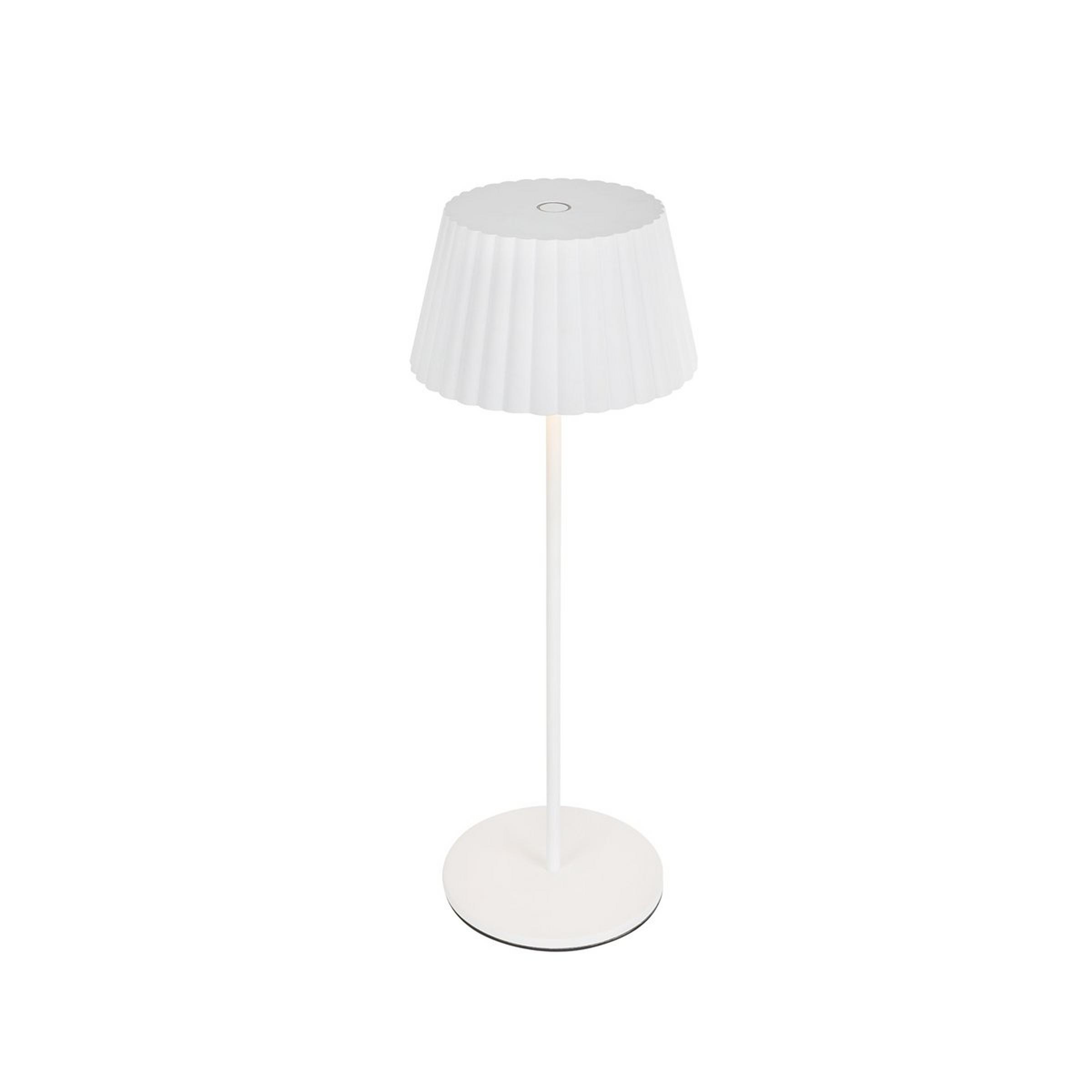 This rechargeable table lamp is cordless and portable so it can be placed anywhere without hassle. The integrated LED is housed within a delicately ridged shade, and the base has a thin profile mimicking the minimalism of the main body. Perfect for small areas like desks or bedsides, this lamp gracefully supplies task lighting wherever placed. Rechargeable battery. 5 Hours of illumination on 100% brightness.
