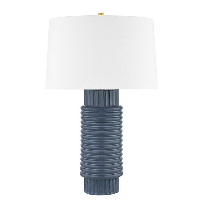 Patterns are highlighted and inverted on the body of the Ribbed Ceramic Table Lamp. The horizontal patterns are convex while the vertical ones are fluted and concave. Add this to any room that needs a pop of texture and complexity. Note: the ceramic has a reactive glaze that creates varying and unique shades of blue and gray, therefore, no two pieces will be exactly alike.