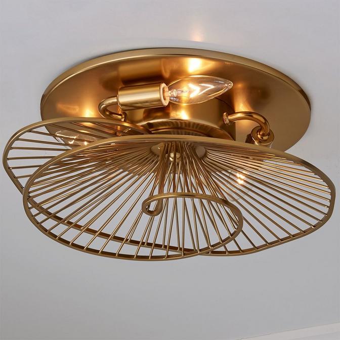 Multiple rods are joined together by swirling ribbons of aged brass metal creating a fantastic, eye-catching ceiling light. Place this stunning piece in a living room, dining room or bedroom and make a modern glam statement!
