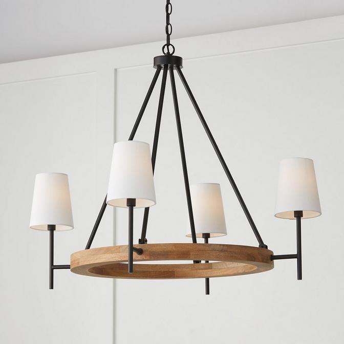 Featuring a mix of metal and wood, this light reinvigorates a classic mid-century style for contemporary times. Its white shade generates a soft glow in a minimalist package.