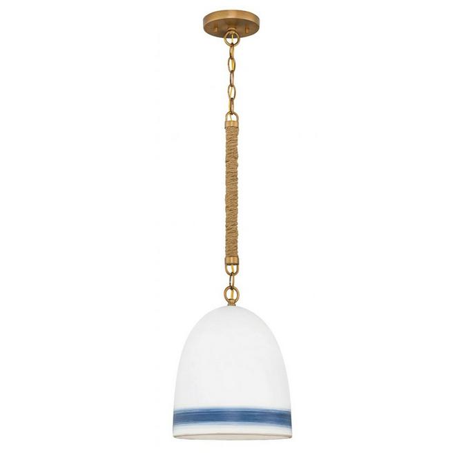 Ideal for adorning your kitchen island, the Rope Wrapped Pendant adds a coastal charm to your space! Thick jute provides a beautiful and organic contrast to the metallic chain, enhancing the nautical motifs. Each ceramic shade is hand-painted with a splash of color, creating a fresh ambiance with ease. Due to the nature of the ceramic, colors, intensity, and sizing of the stripe may vary.