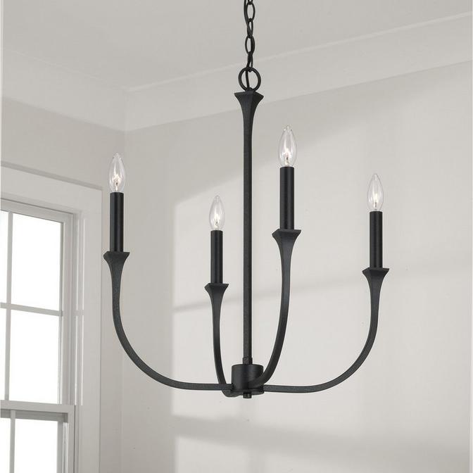 This fixture's curved arms hold candlesticks that come with interchangeable sleeves for extra customizability. As a material, the use of wrought iron is evocative as it is used both in organic, nature-inspired garden fences as well as industrial settings. With the knowledge of this history in mind, our Rosecott Chandelier is a tasteful choice for those who are seeking any combination of Art Nouveau, French Countryside, or Modern Industrial aesthetics.