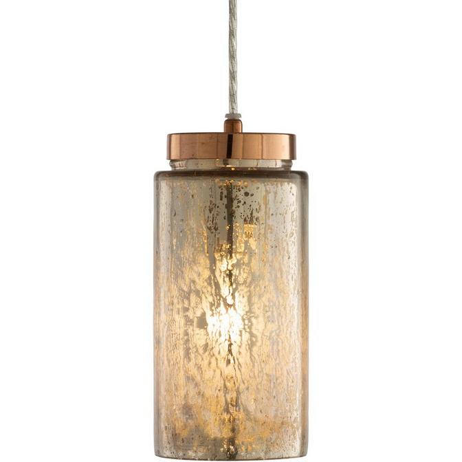 The Roston Pendant brings warmth and vintage charm with glamourous mercury glass paired with shiny copper accents.