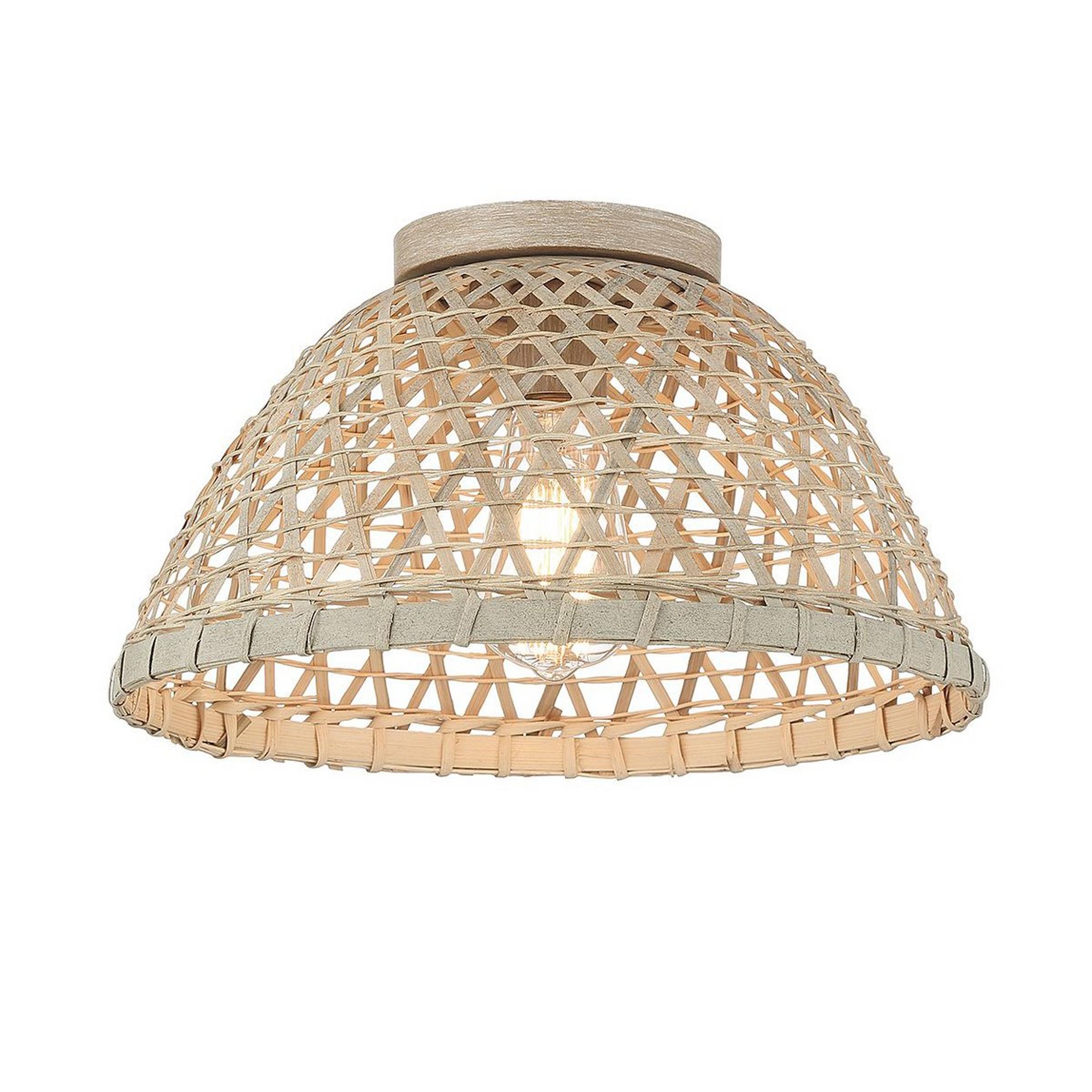 Amenable and understated, this neutral-colored ceiling light provides a gently stimulating texture coming from a diagonal woven pattern. The rattan material contributes to a casual energy that sets guests at ease while entertaining. Due to the natural materials used, each piece is unique and may vary in tone.