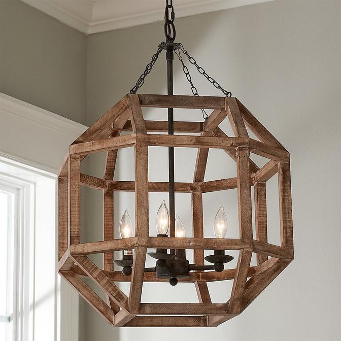 The Rustic Keaton Lantern will add an angled farmhouse appeal to your living room or dining room. Its boxy frame has an open airiness to show the center light cluster.