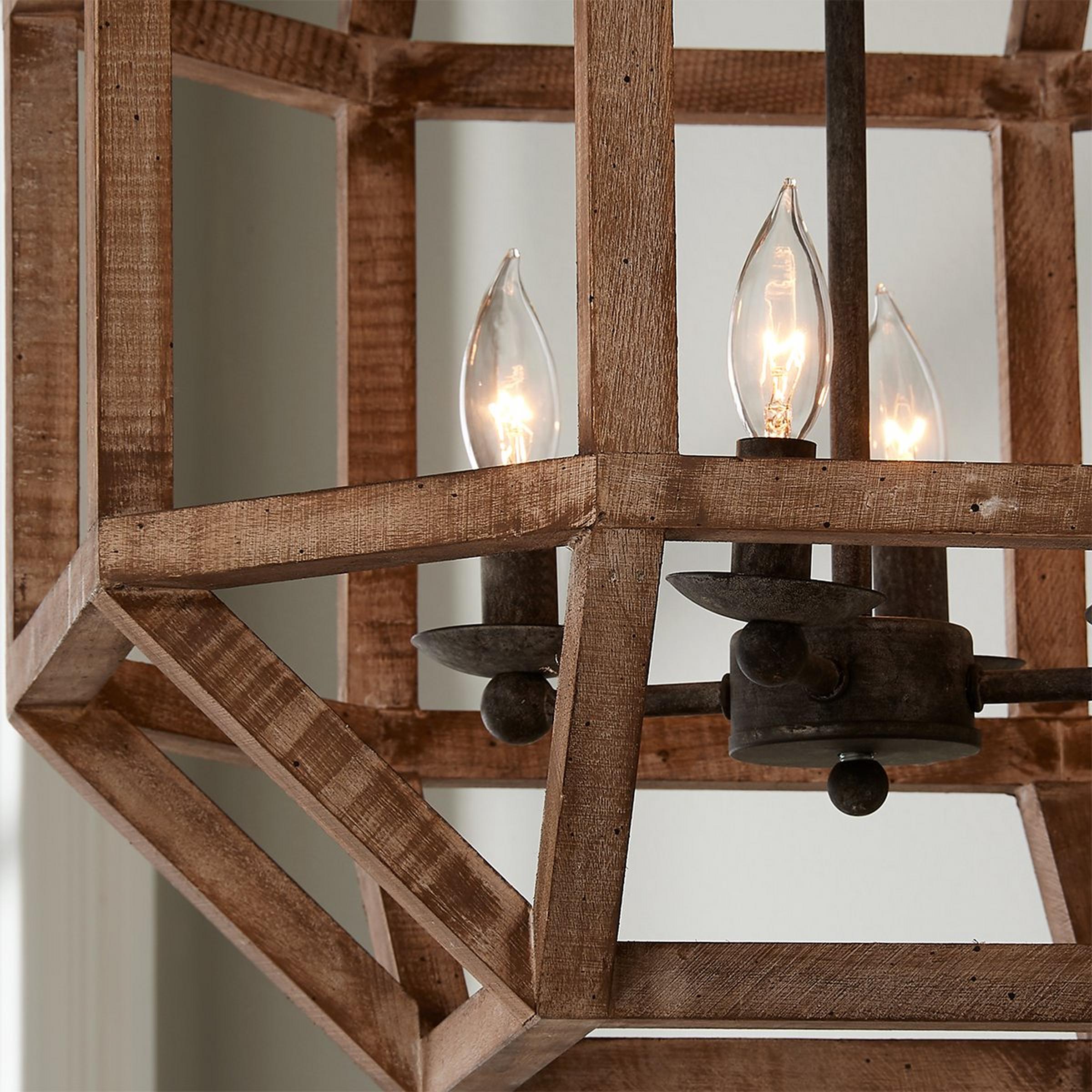 The Rustic Keaton Lantern will add an angled farmhouse appeal to your living room or dining room. Its boxy frame has an open airiness to show the center light cluster.
