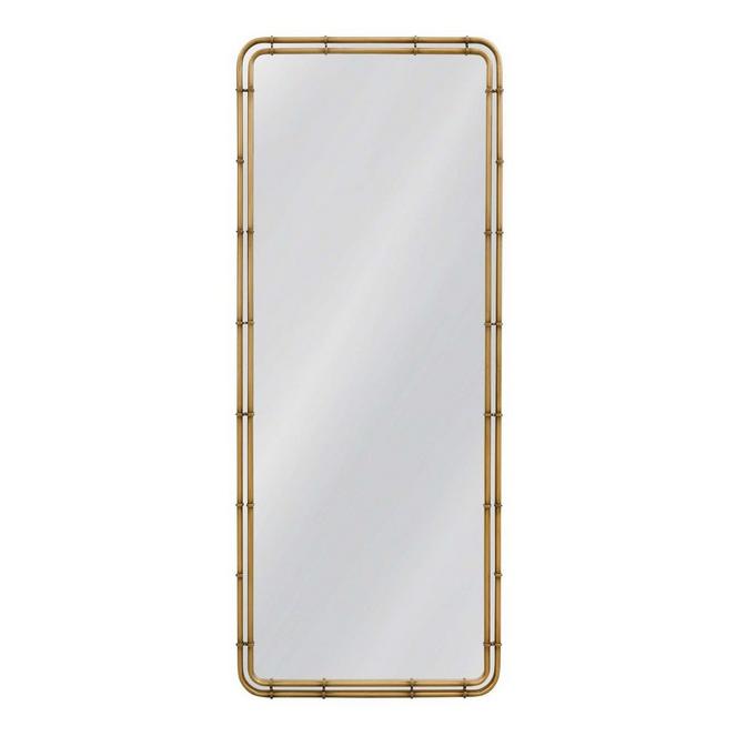 The Ambrose Floor Mirror proudly displays metalwork studded with visible brackets, embracing materiality and demonstrating an appreciation for textural details. The double-frame style of the mirror provides a layered effect, with a slim mirrored band between the frames that blurs the lines between interior and exterior. This mirror makes a stimulating accent piece in a home office, dressing room, or living space, and it is as functional as it is stylish. Consider how this mirror compares and contrasts with existing décor, and allow each component of a room to blend together magnificently.