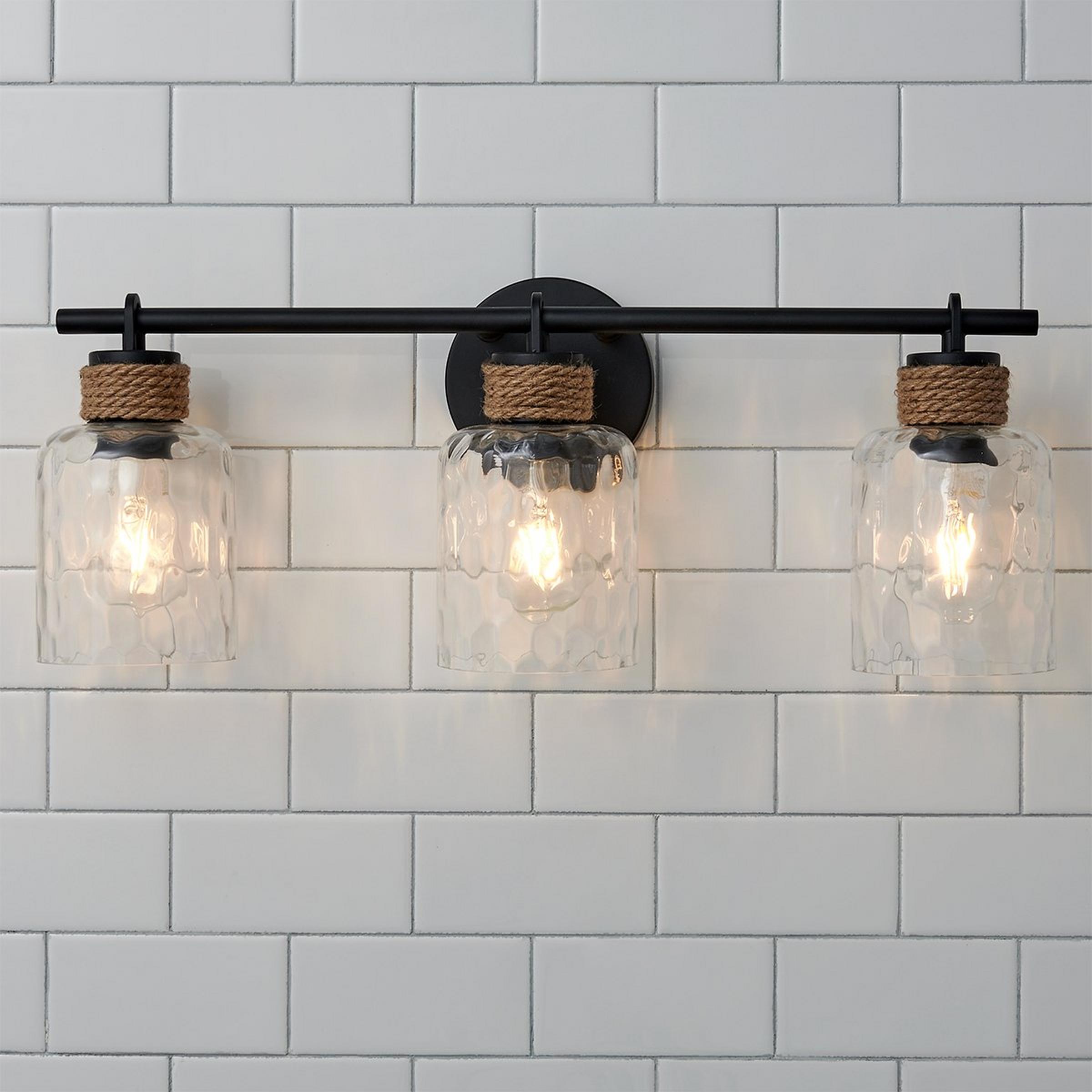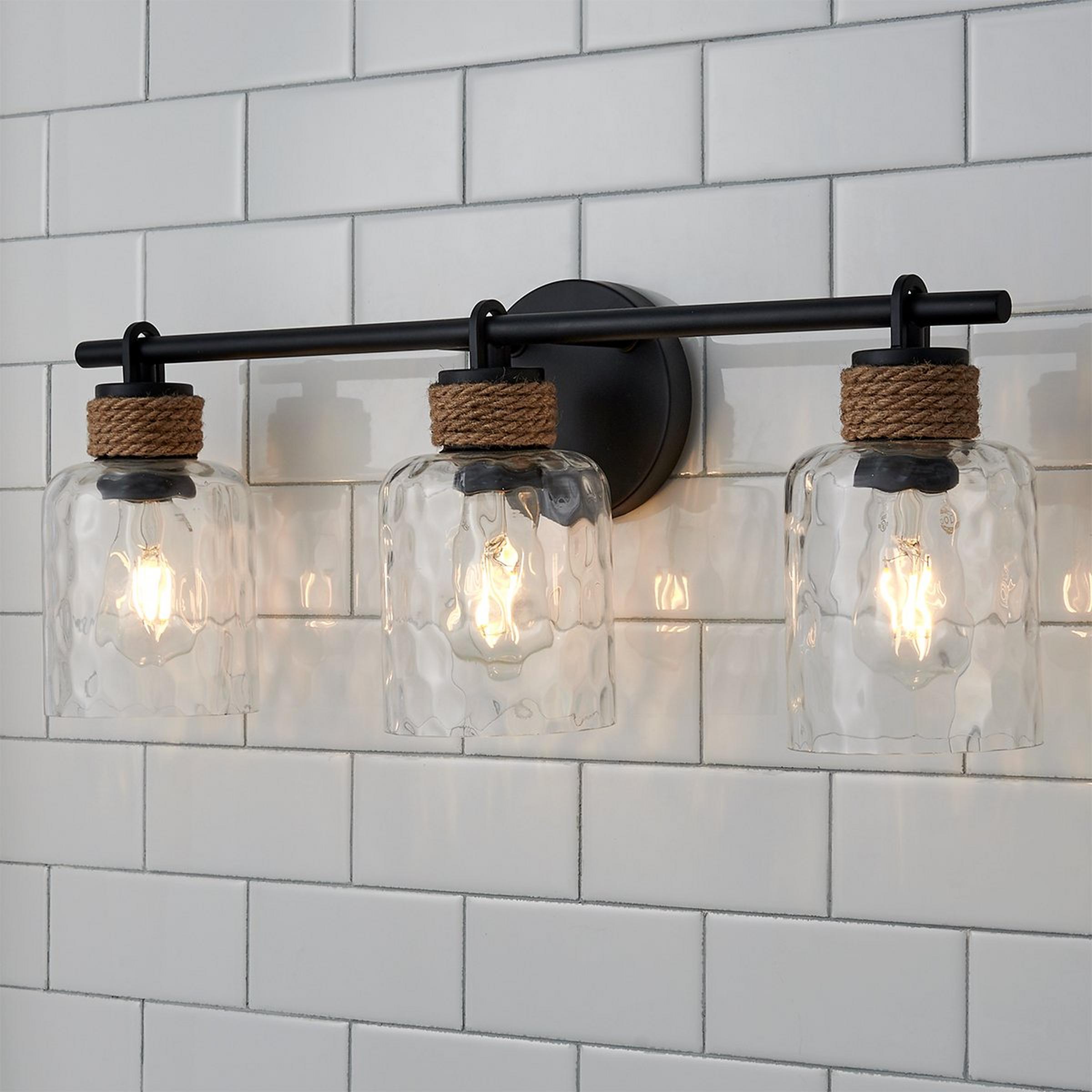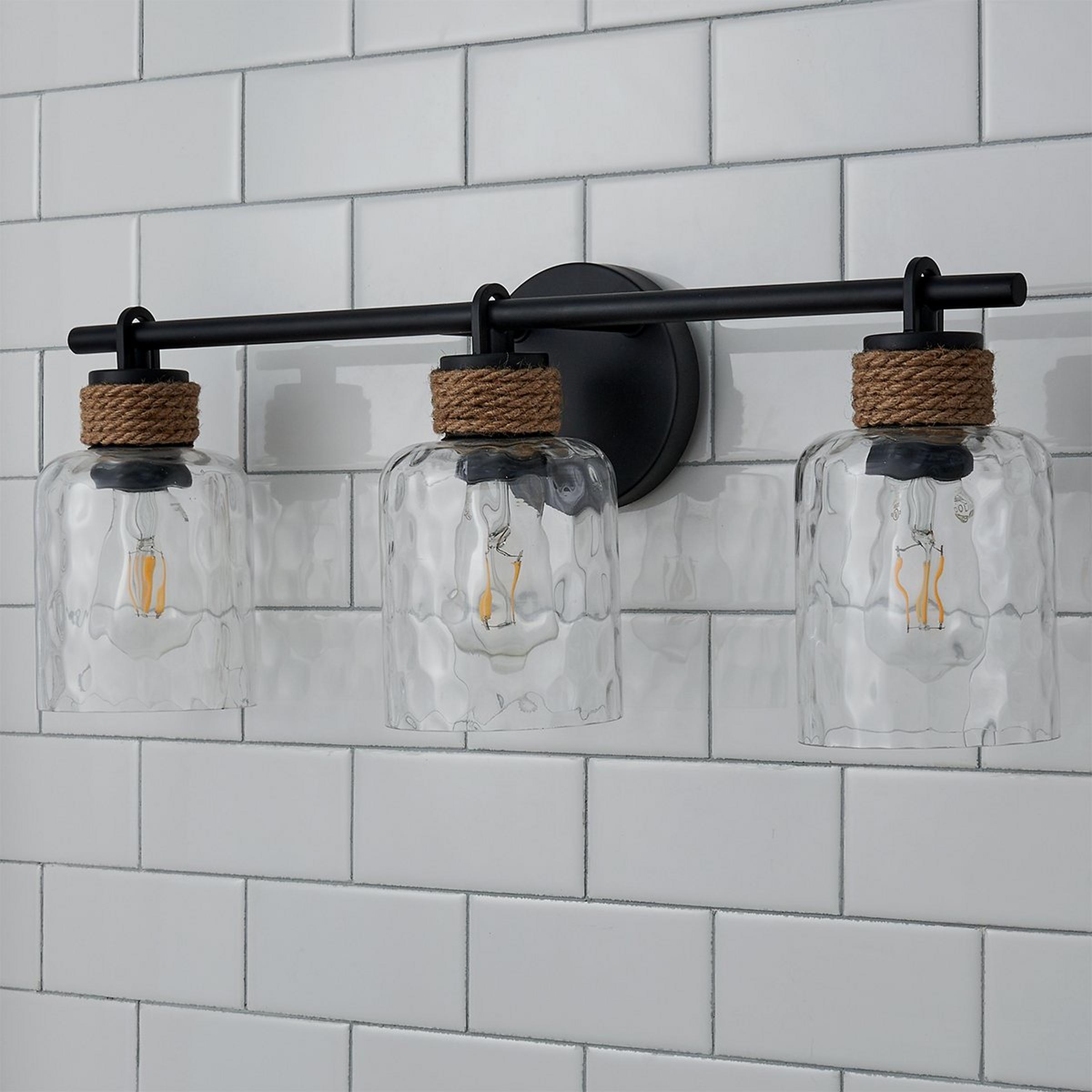 The Samuel Collection aims to bring a nautical edge to your bathroom with seafaring-inspired design elements. The clear water glass shades are accented by rope details, creating a casual coastal vanity light with a hint of Scandinavian style.