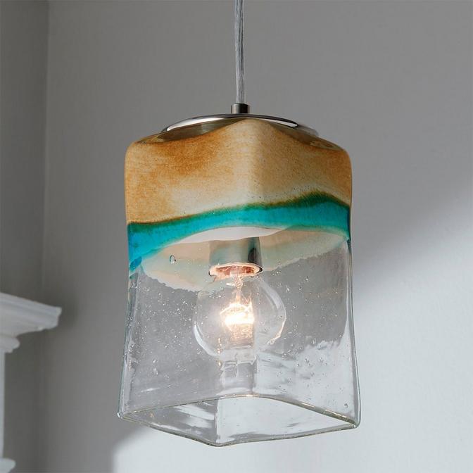 Every Sand and Turquoise Square Pendant Light will be unique but they will all remind you of the beach or desert with colors and textures associated with sand, water and sky. Size and colors may vary. <!--exclusive-->