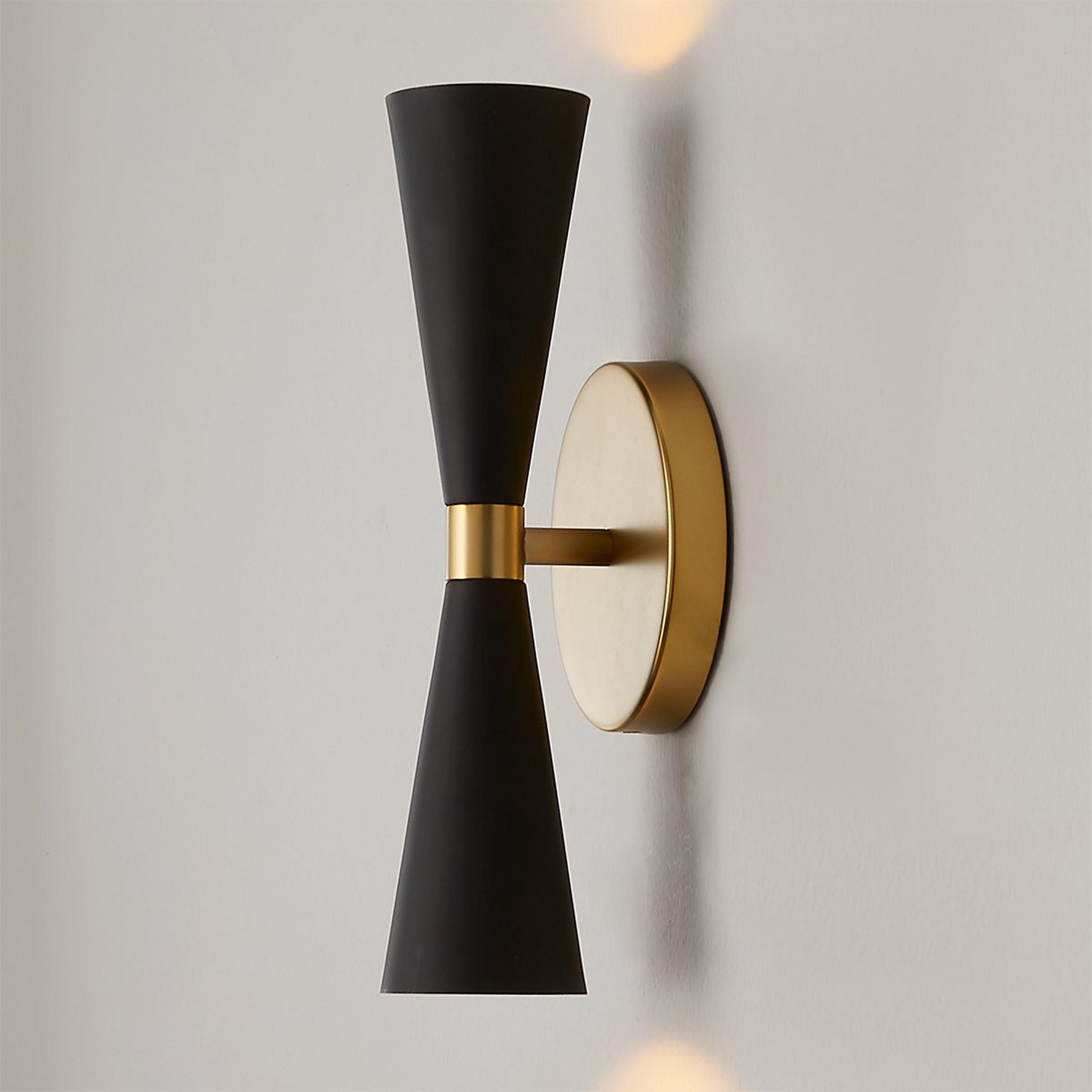Mid-century modern design incorporates a linear approach with metal shades and warm vintage brass details. The G9 LED light bulb provides a warm everlasting glow.