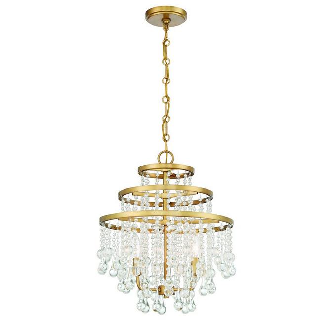 Our Sanguine Chandelier consists of three tiers of circular rings that drape crystals down from above to grace the space with a glamorous glow. The crystals vary in size from small beads to larger dewdrop as they descend.