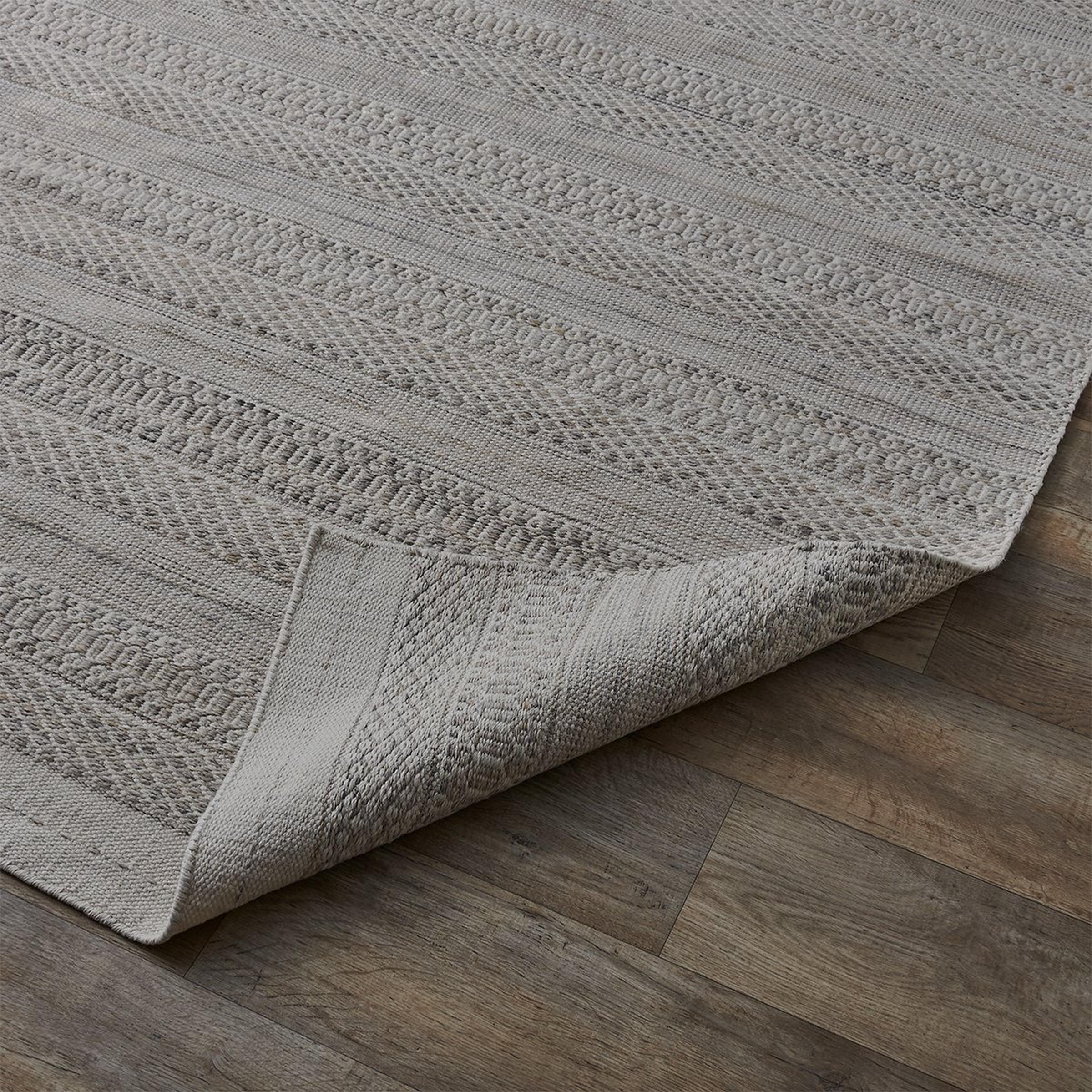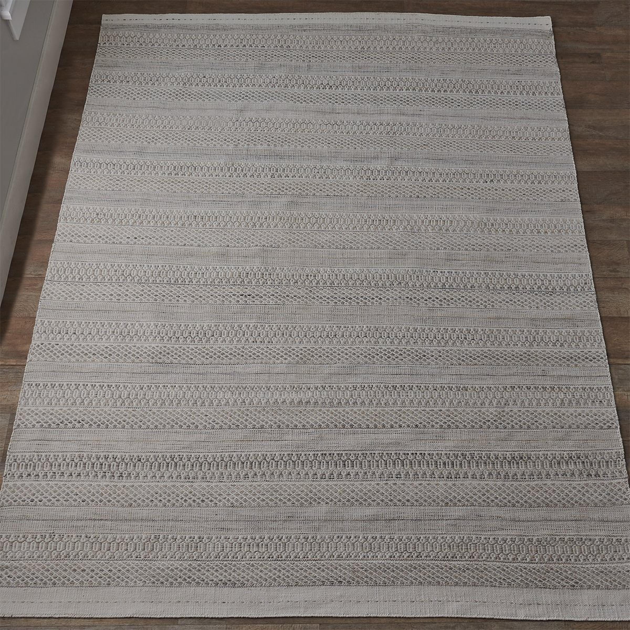 Add a soft touch to your space with the Sanibel Rug. Woven by hand from polyester, this durable piece features a simple geometric pattern with a delicate, linear structure. Chic and fresh with casual charm, its cozy look will elevate the atmosphere in any space, from your living room to your patio.