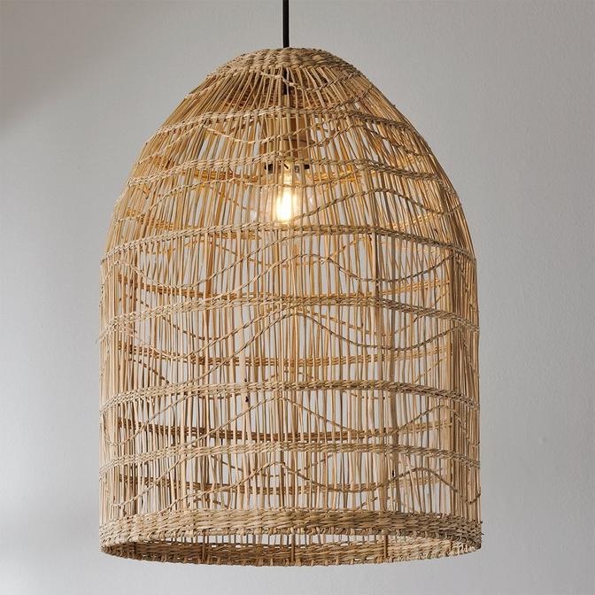 Illuminate your space with style and grace with the Sorong Pendant. Crafted using woven seagrass, its torpedo shape has classic lines, while the black cord and brushed brass hardware add a touch of natural warmth.