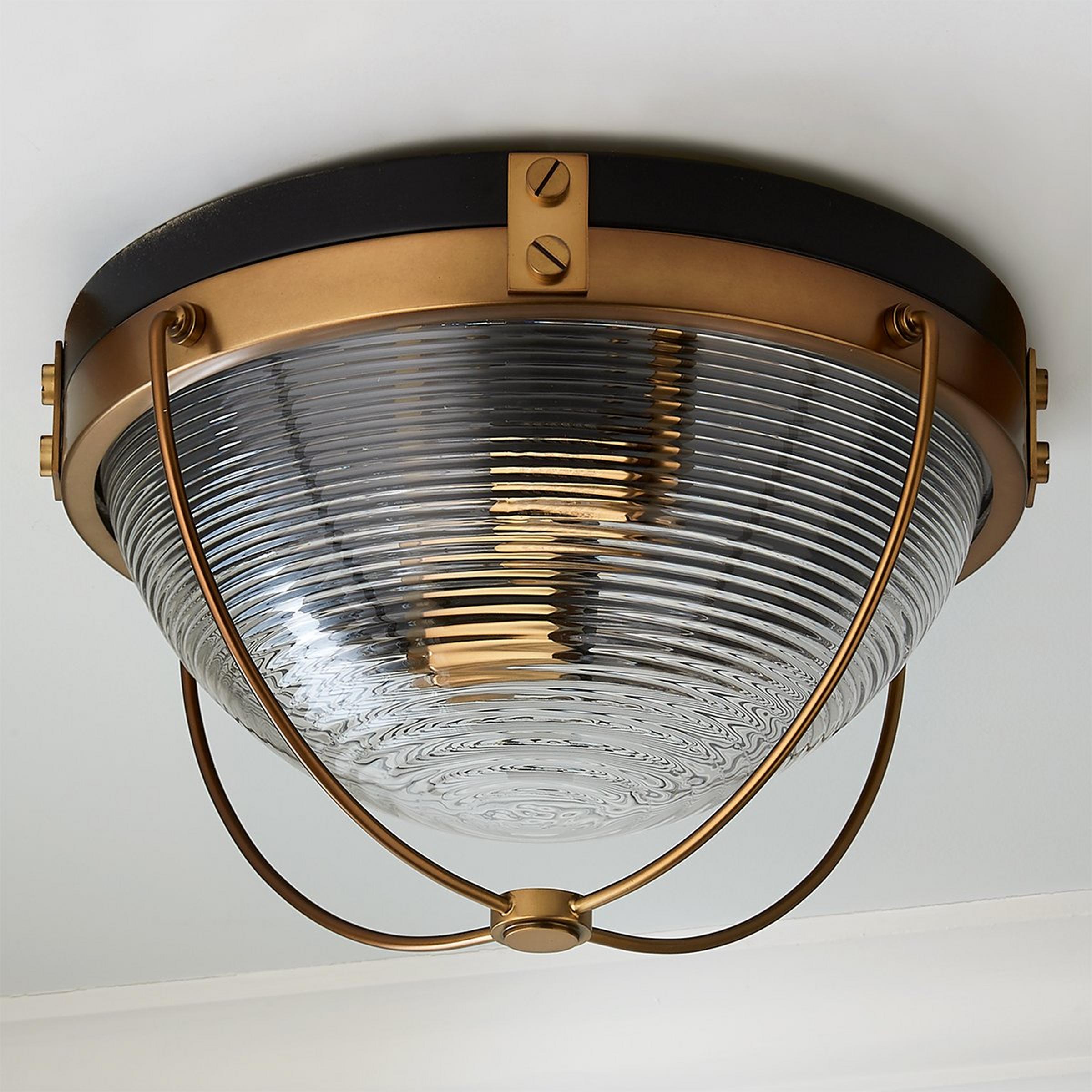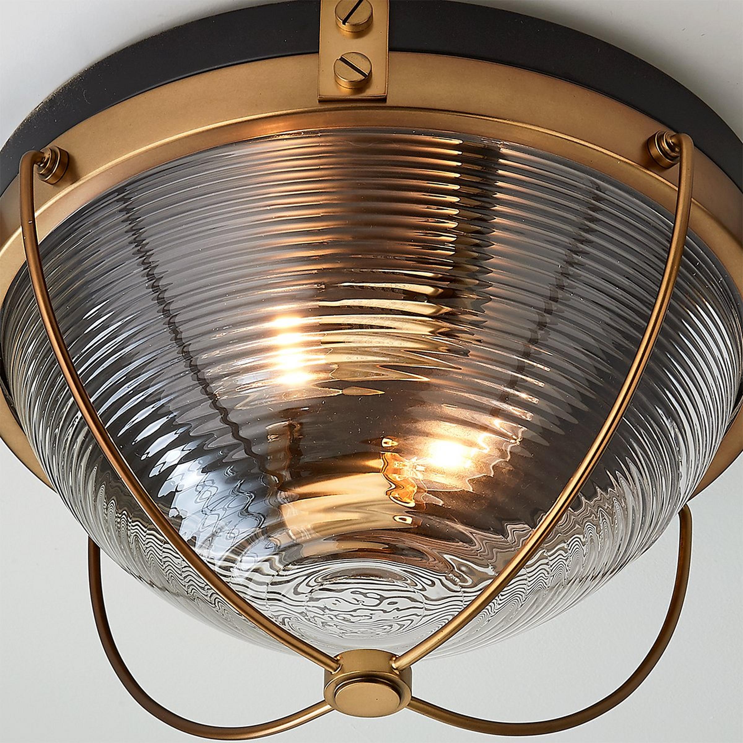 Color:Black / Aged Brass / Clear Ribbed Glass