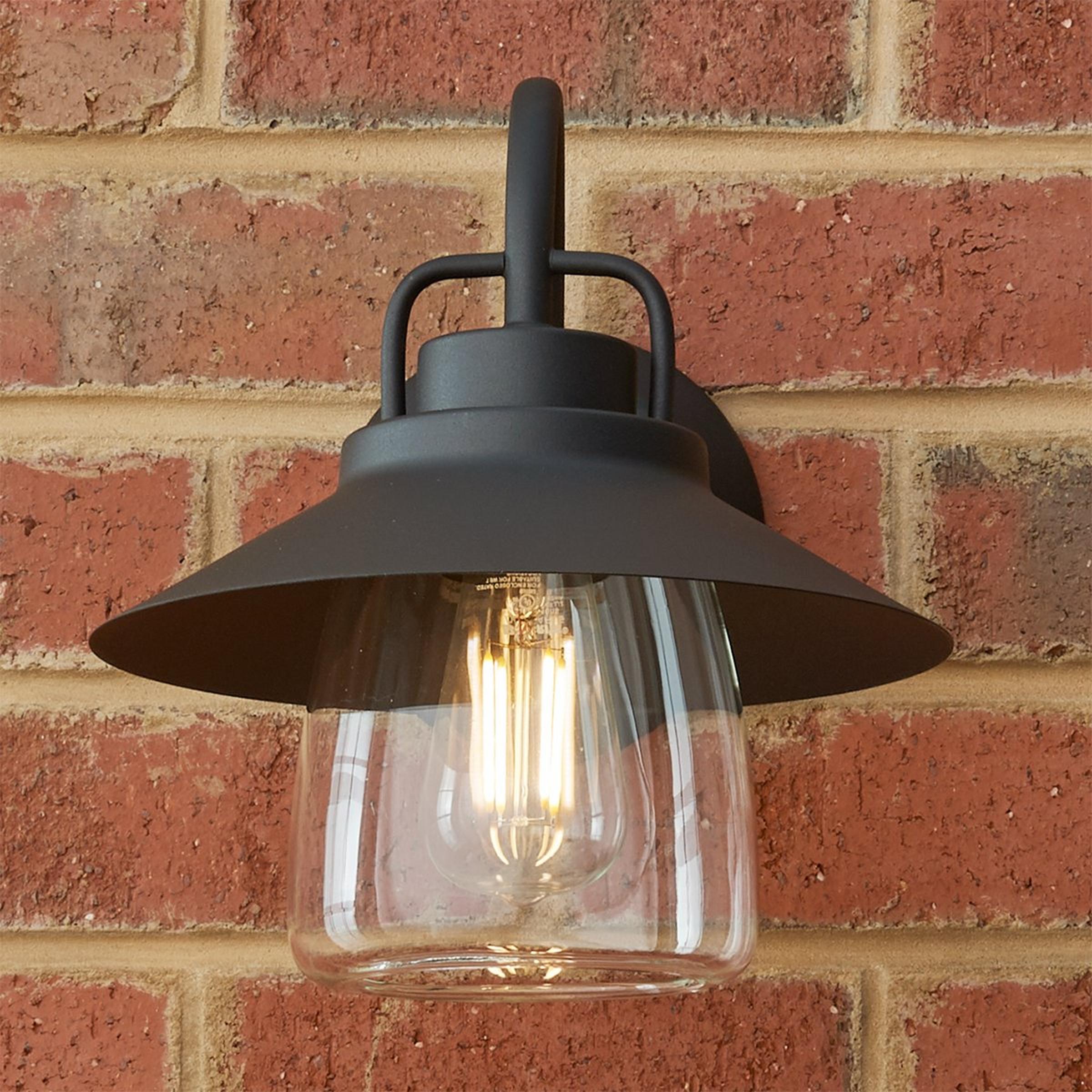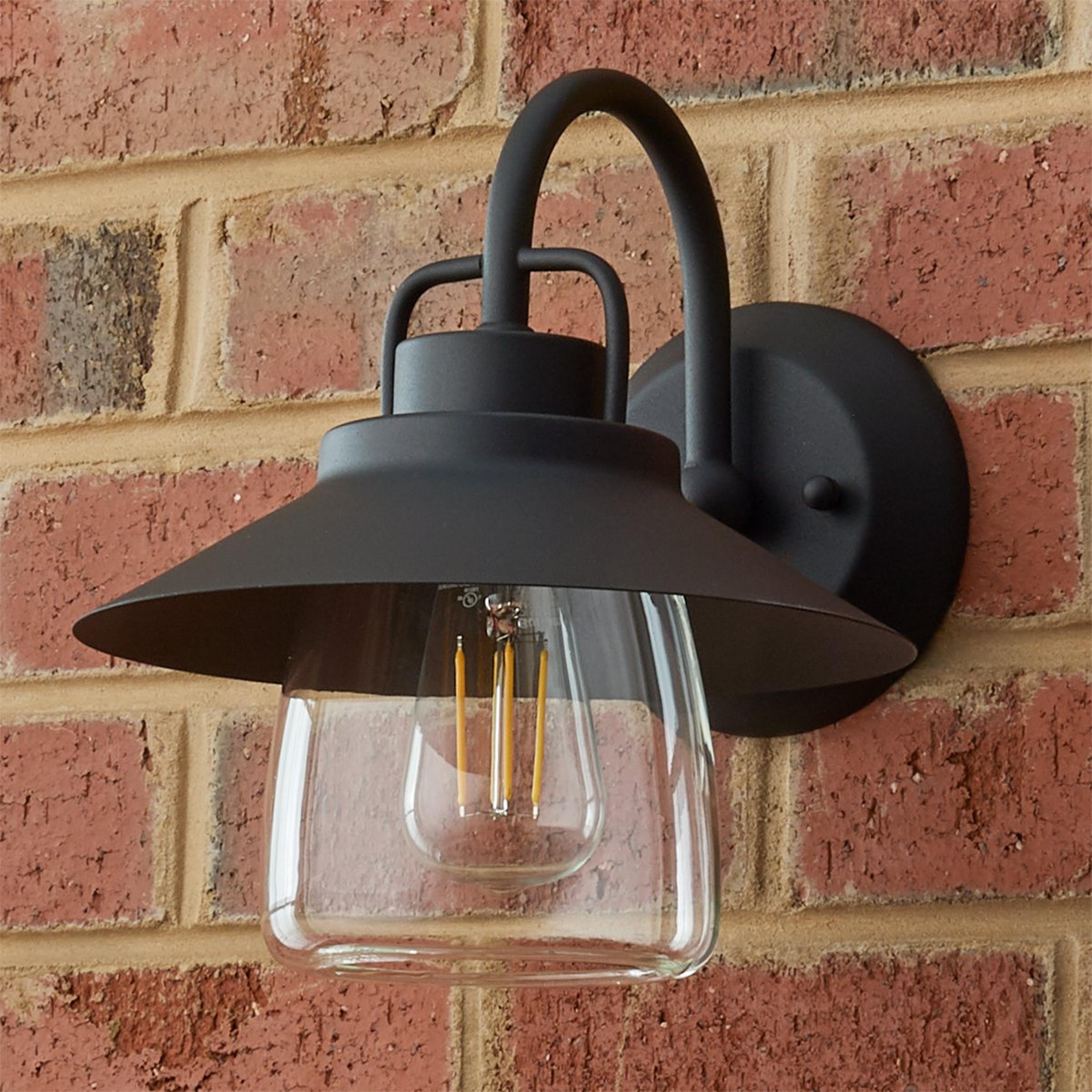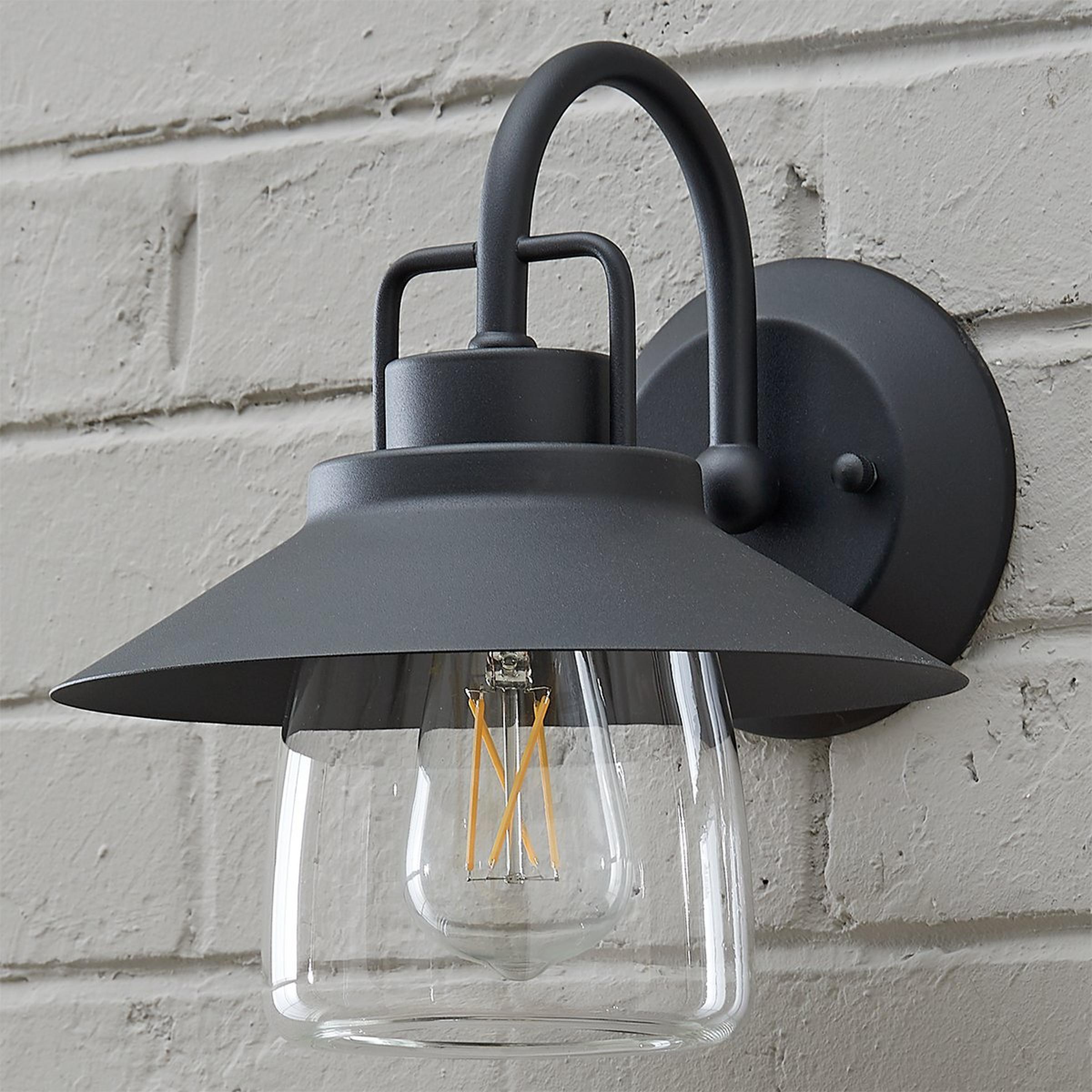 A stylish fixture to decorate the exterior of your home, our Shaded Firefly Outdoor Light will enhance the overall motif of your humble abode. The curved clear glass protecting the bulb is connected by the black, oversized shade that adds a stylish touch. Attached by an arched neck, this light will shed some much needed brightness beside your door or around the perimeter of your home.