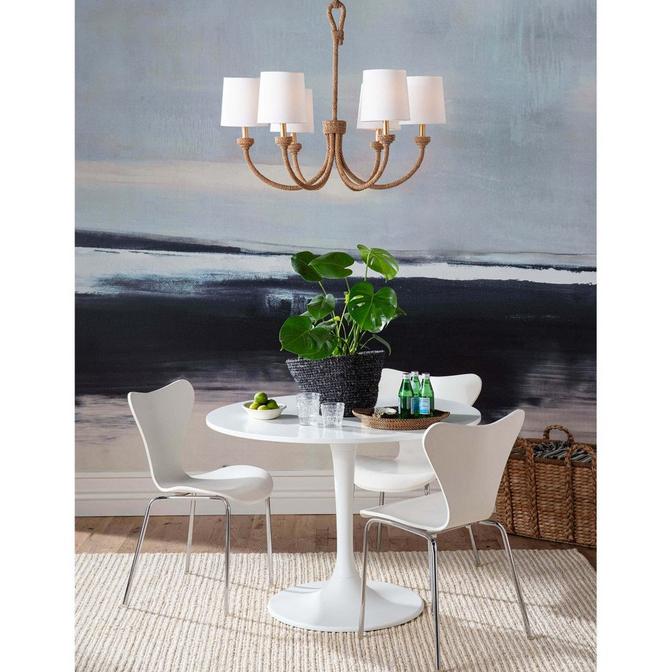 Coastal Living graces us with another fabulous fixture, our Shepard Chandelier. Ideal for rustic or nautical settings, the draw of this hook and loop chandelier is the rattan wrapped frame. The twists of natural rattan add lots of texture and evoke a soft bohemian aesthetic while the white shades bring contemporary elegance.