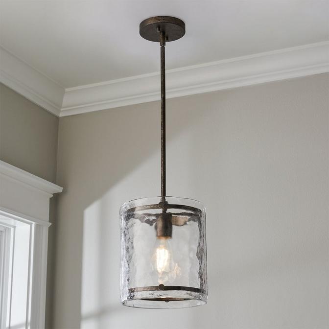 Our Hazy Lining Pendant features thick, hazy textured glass curves around a metal frame to exude rustic glamour to an already fabulous design. Use multiples over a kitchen island to enhance the overall look!