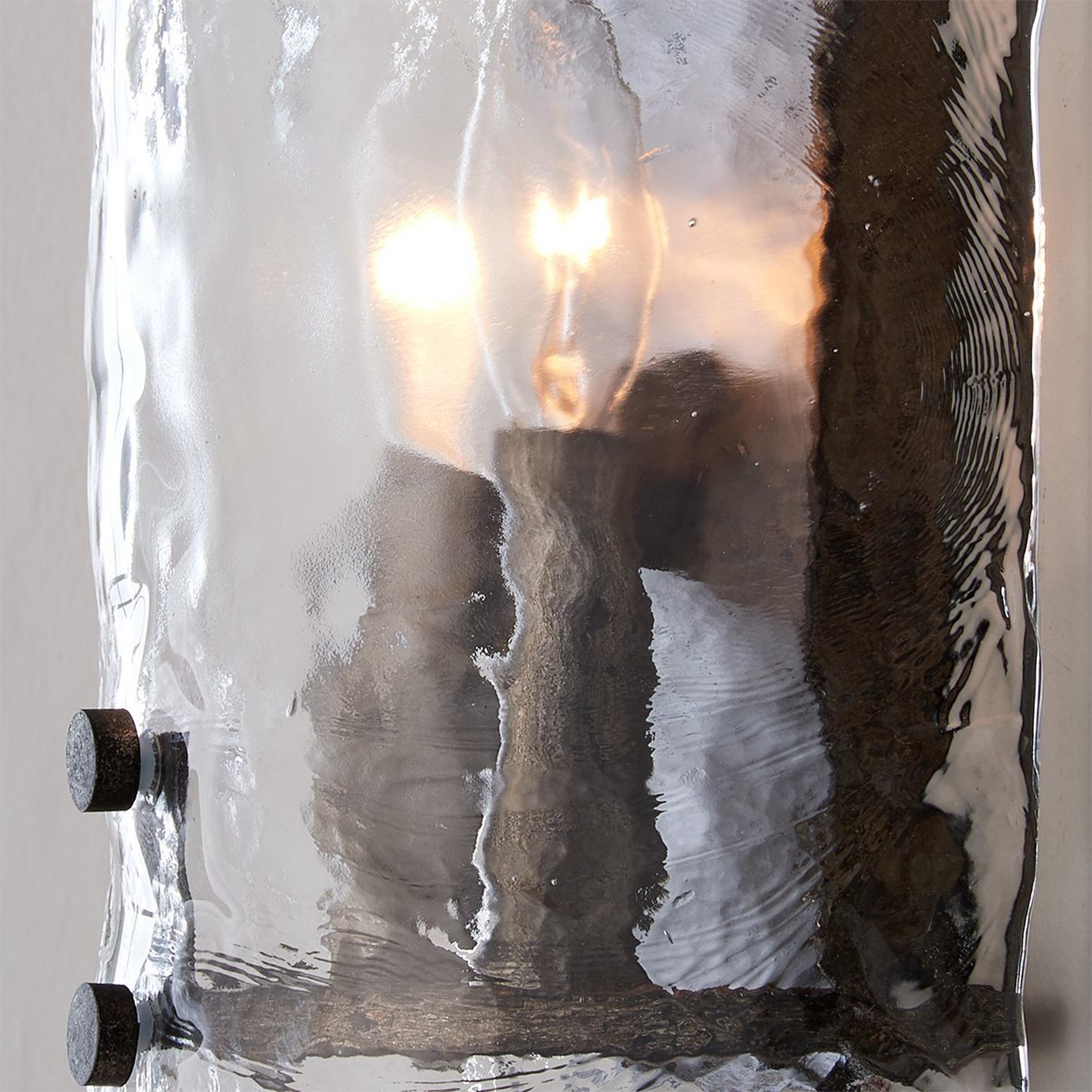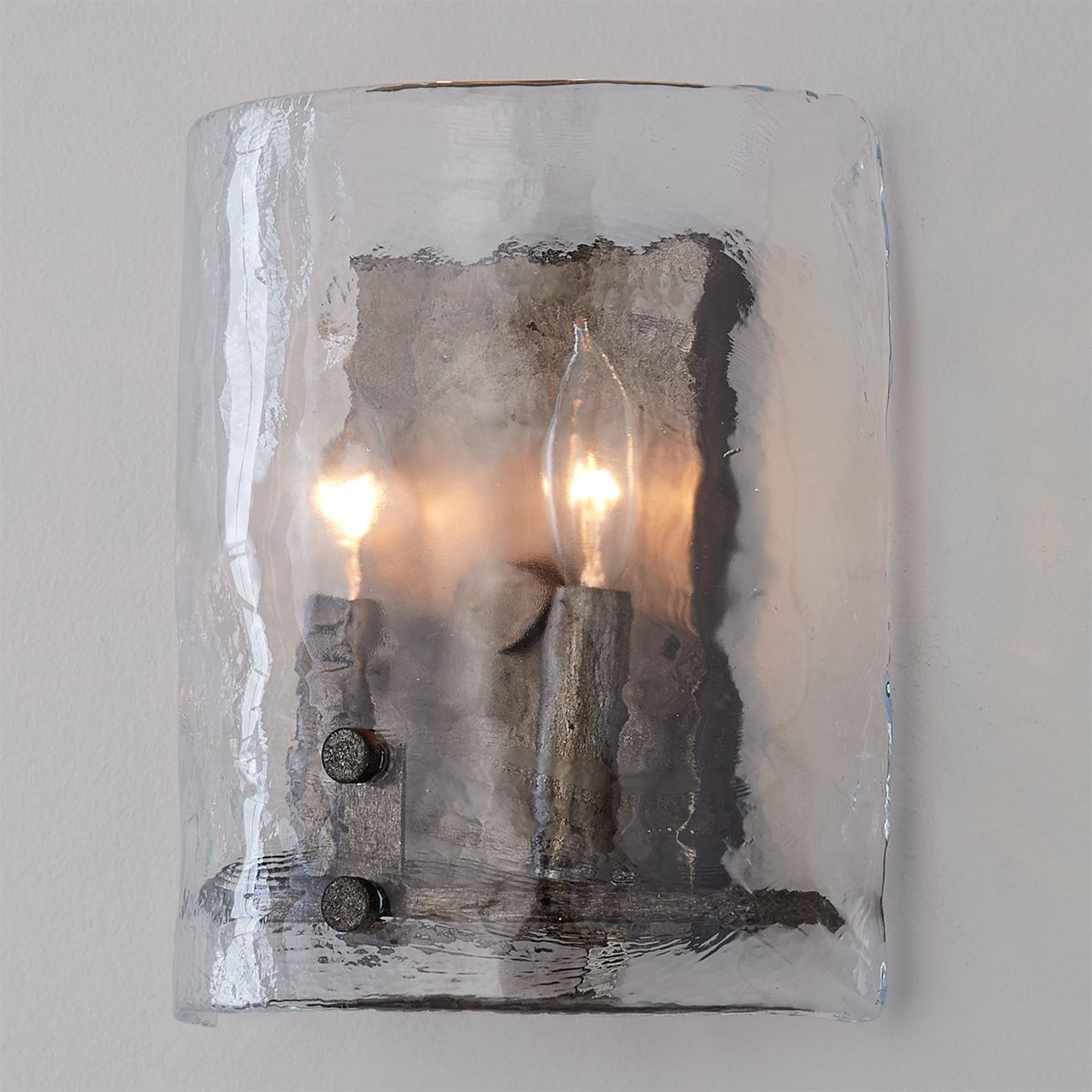Our Hazy Lining collection features thick, hazy textured glass curves around a metal frame to exude rustic glamour to an already fabulous design. At only 4.5" deep, this sconce is perfect for narrow spaces like a hallway or bathroom!