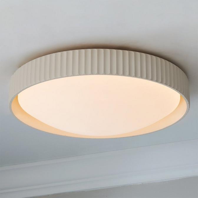 Silverton has a simple fluted structure made from concrete, giving it a soft but contemporary look. The pleasant light of the integrated LED diffuses through the opal acrylic, giving this low-profile ceiling light a lovely glow! Add a touch of character to your hallways or create a welcoming ambiance by pairing a few in communal areas.