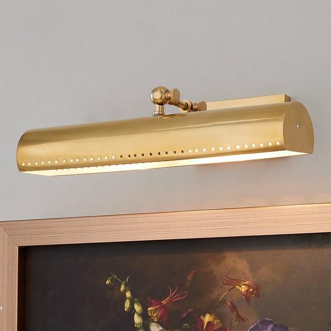 This reinvented classic is a sleek and transitional option to highlight your favorite piece of art and features decorative joints that are an essential detail for this fixture. A metal shade delivers a direct light to reveal the beauty of paintings and pictures of your loved ones.