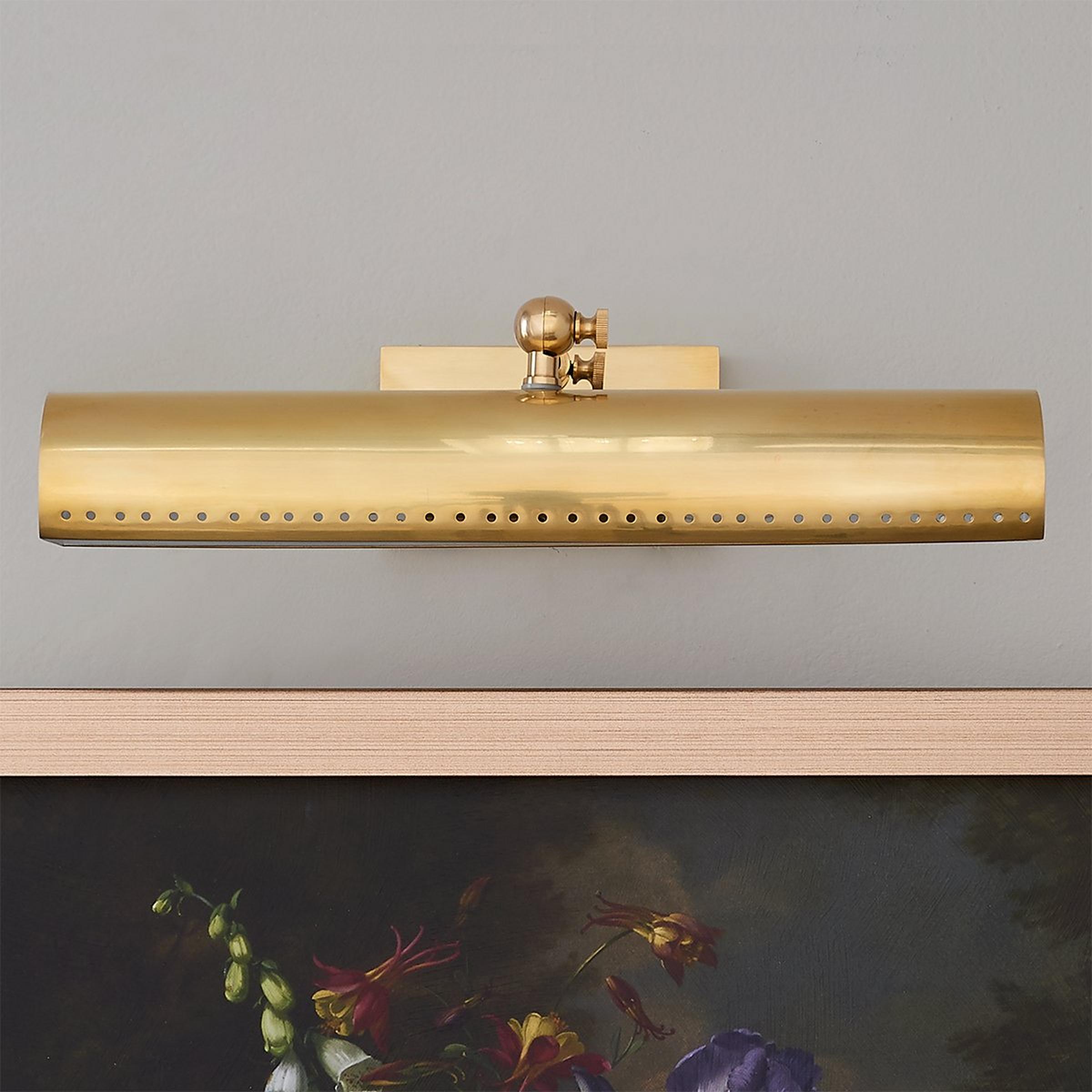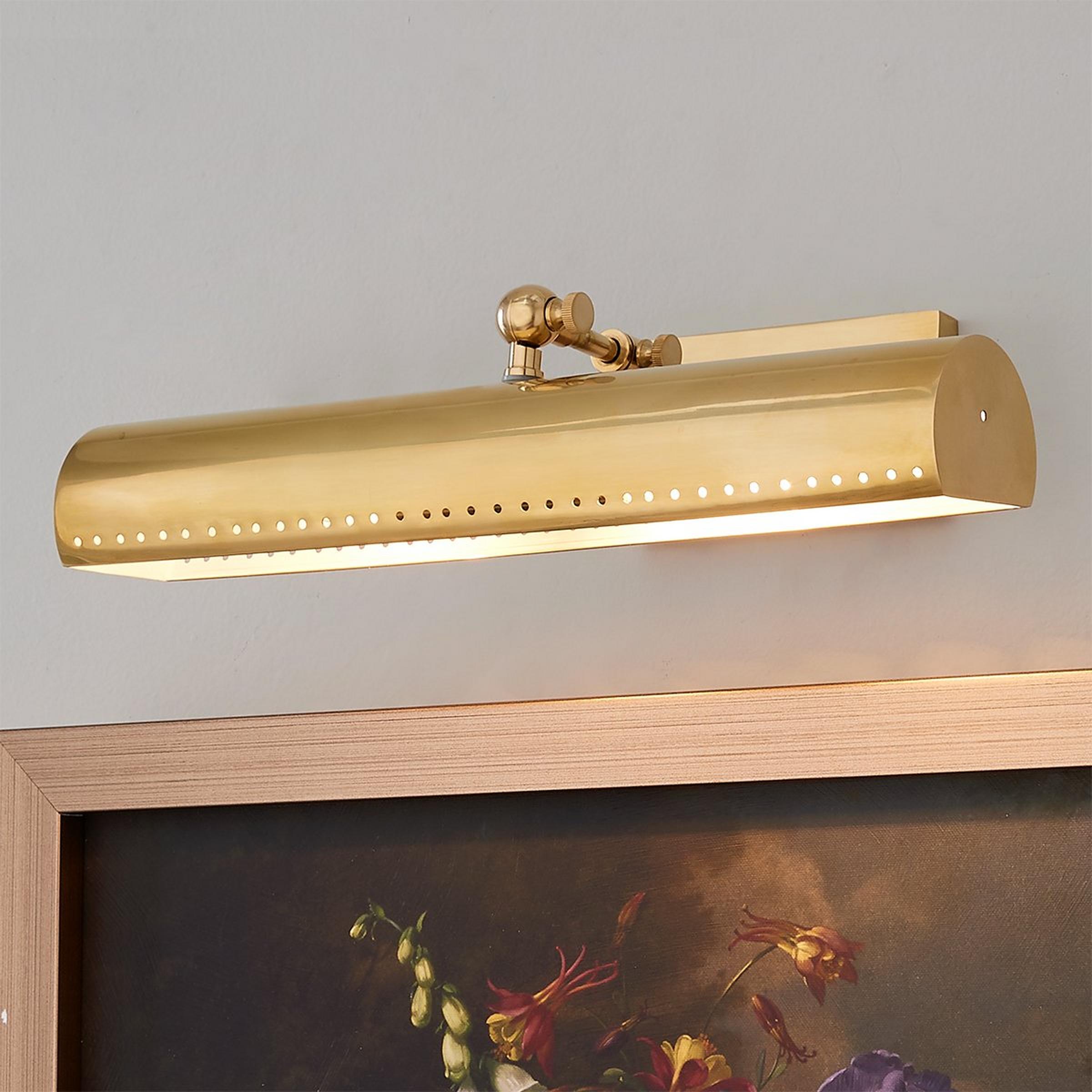 This reinvented classic is a sleek and transitional option to highlight your favorite piece of art and features decorative joints that are an essential detail for this fixture. A metal shade delivers a direct light to reveal the beauty of paintings and pictures of your loved ones.