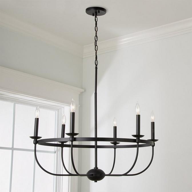 The Simply Blake collection embodies the current transitional design trend, updated forms, and vintage-inspired details. The chandeliers mimic the graceful dome form while keeping the design understated, simple, and fresh. This fixture will work well in a modern farmhouse or transitional-style room.