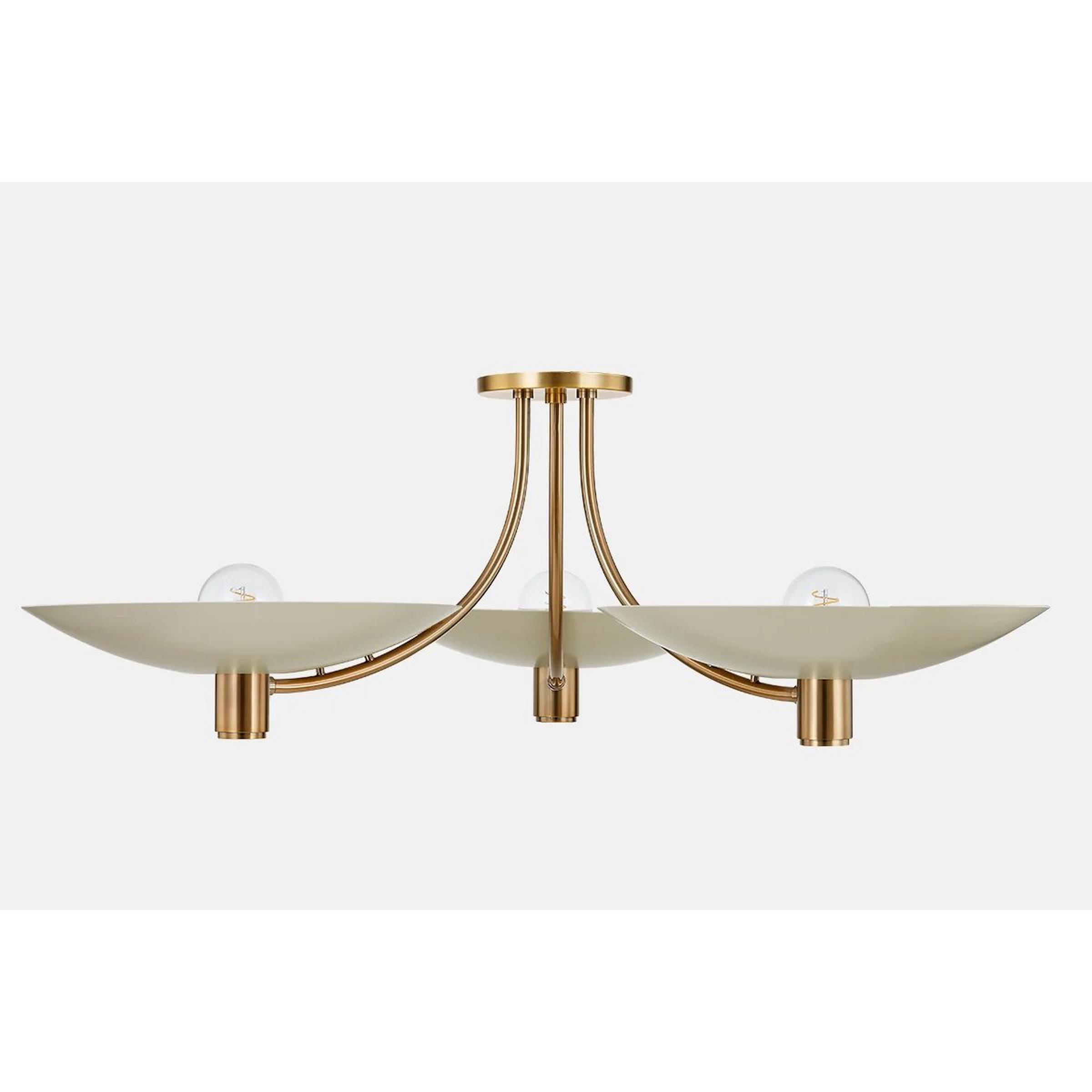 The Skyline Ceiling Light provides a delicate glow to fill a room by bouncing light upwards off a ceiling rather than shining a spotlight down over the space. A trio of disks carry the formality of a chandelier while remaining close to the ceiling to fit into rooms of any size.