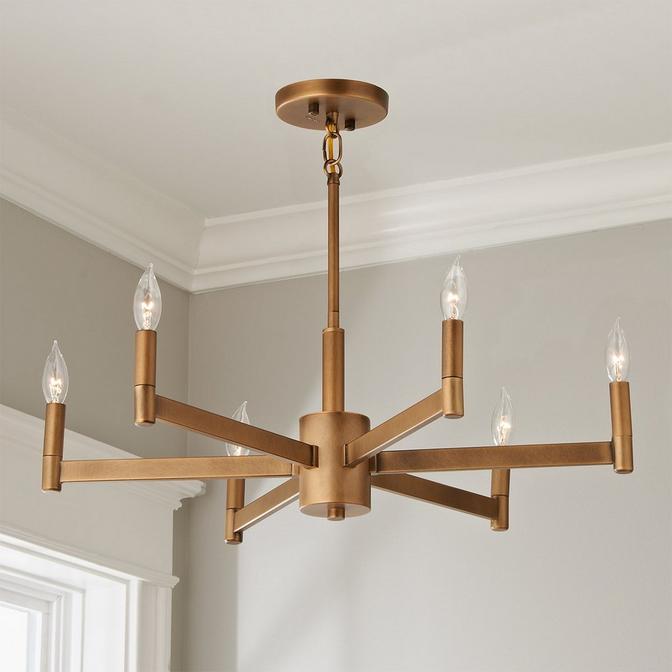 Less is more with this sleek minimalist chandelier. The thin bar arms and simple cylindrical candle sleeves are perfect for adding modern pizzazz to understated decor.