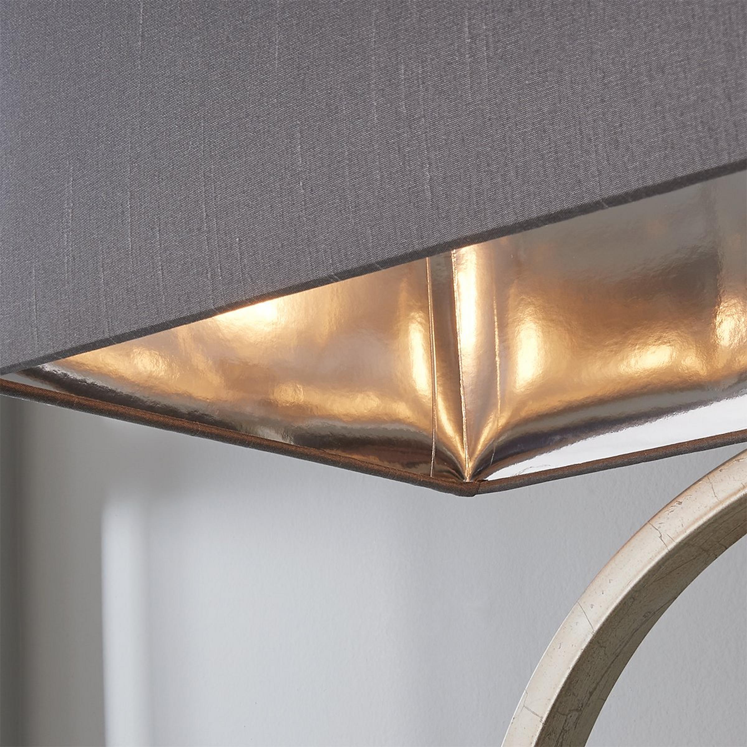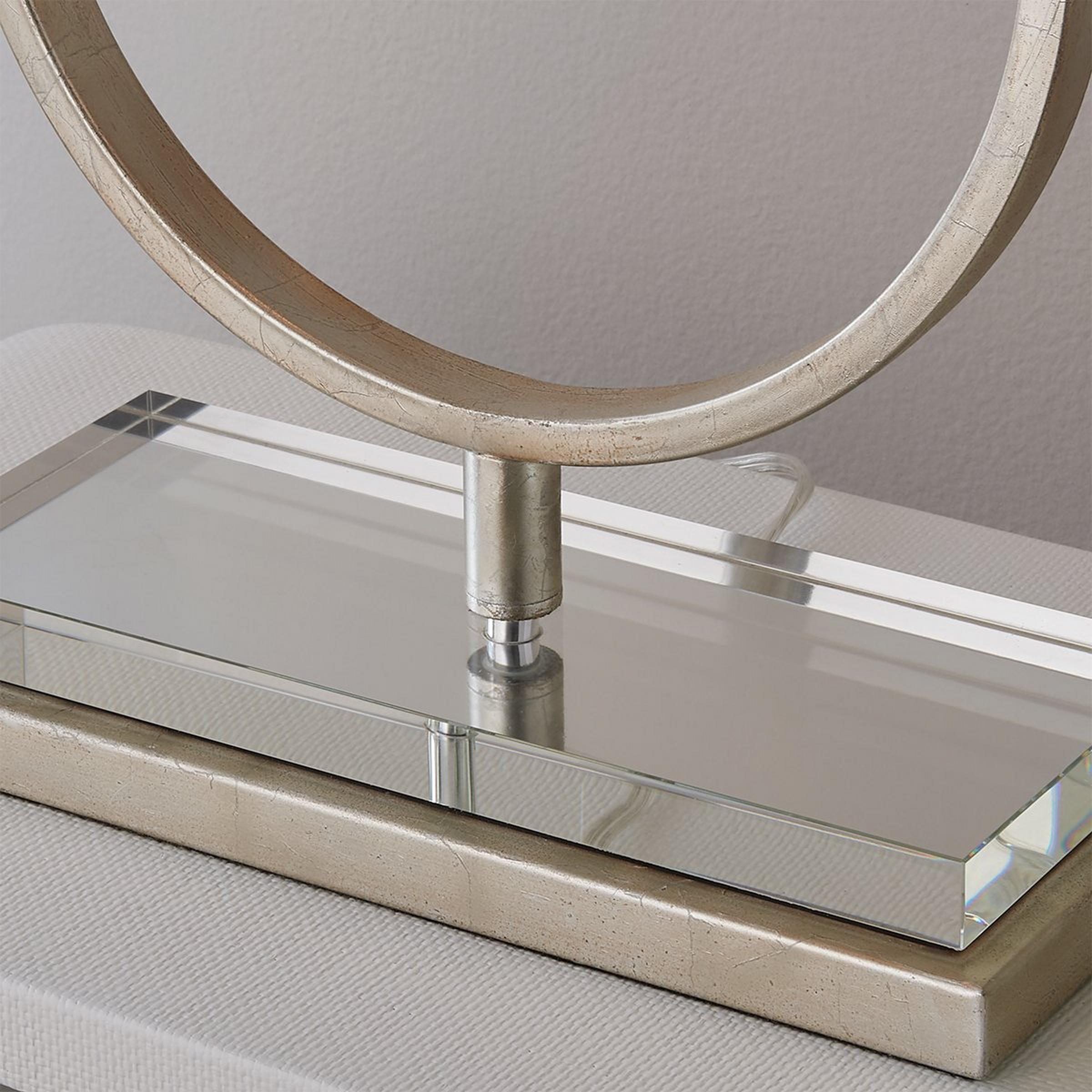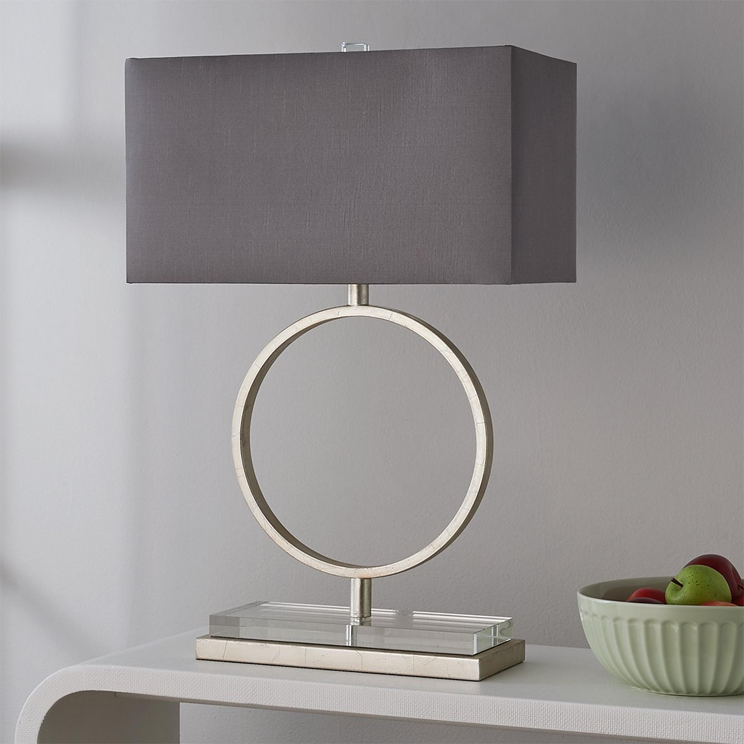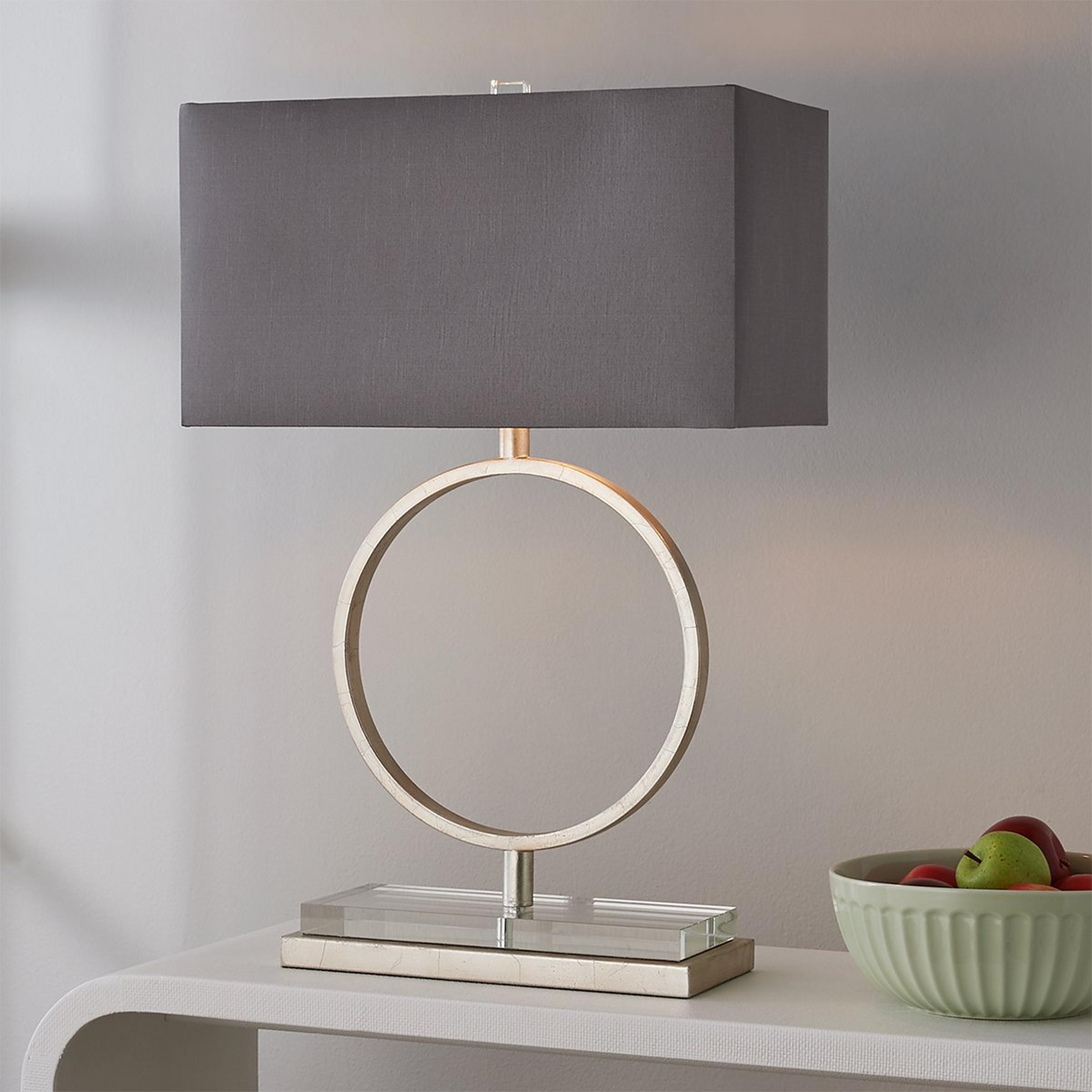 Did you hear that? It was our Slender Circle Table Lamp calling your name. The open center is finished with an antique Silver leaf that rests upon an acrylic and metal foundation. The rectangular shade is a contrasting shape from the circular body. Modern in style and high in quality, your living room will answer back with welcoming arms.