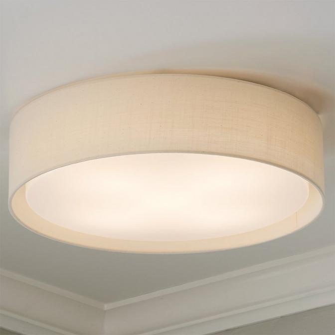 Modern and simple, this slim shade flush mount ceiling light is an excellent choice for modern homes. The low-profile design is perfect for spaces with low ceilings. The integrated LED light is softened by an acrylic diffuser and provides plenty of light and energy savings! Available in an array of fabric shades to match a variety of interiors, from modern kitchens to contemporary bedrooms and more!