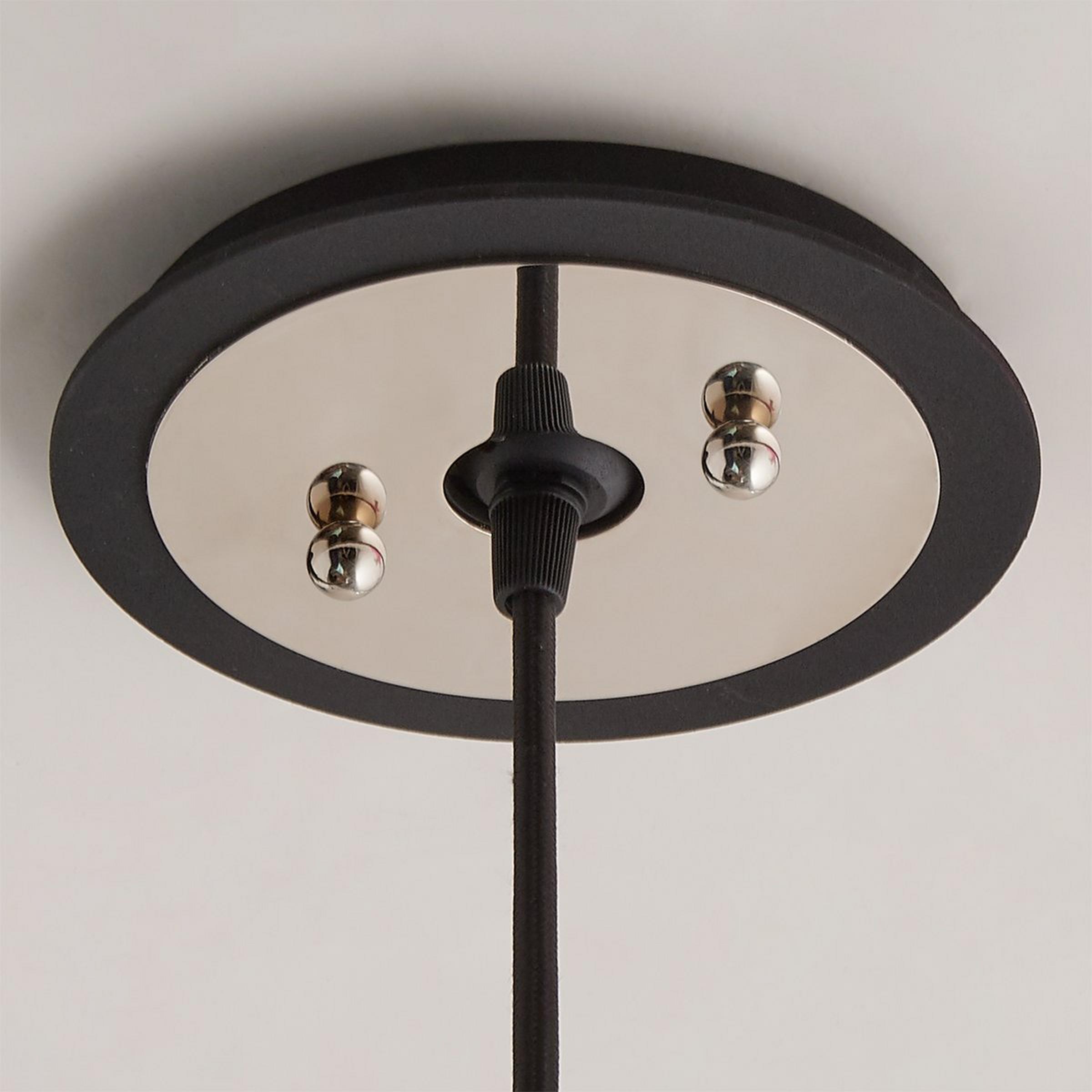 A glass globe in a modern smoked finish hangs from matte black cord off a polished nickel canopy to create this sleek pendant. Edison bulbs sold separately. 60 watt medium base lamps max. (10.75"Hx7"W) Supplied with 10' of cloth cord and 6" round hang-straight canopy.