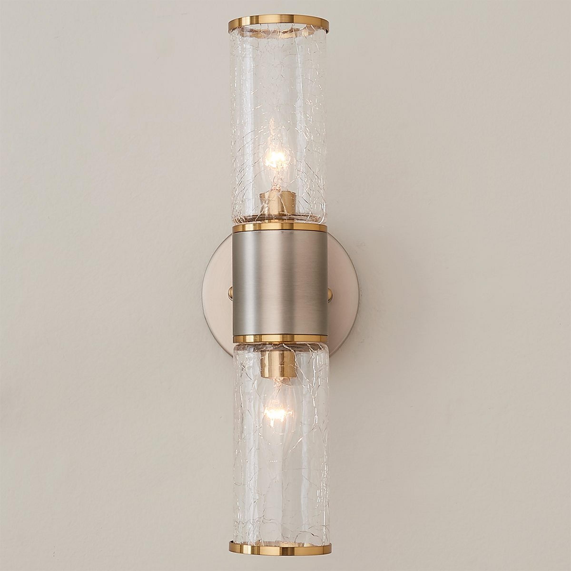 Our Solaris Collection brings glamorous elements to the urban world of design. Each fixture displays a mix of metal finishes with crackle glass cylinder shades for extra detail. These lights offer a unique sense of style for you to offer in various spaces in your home.